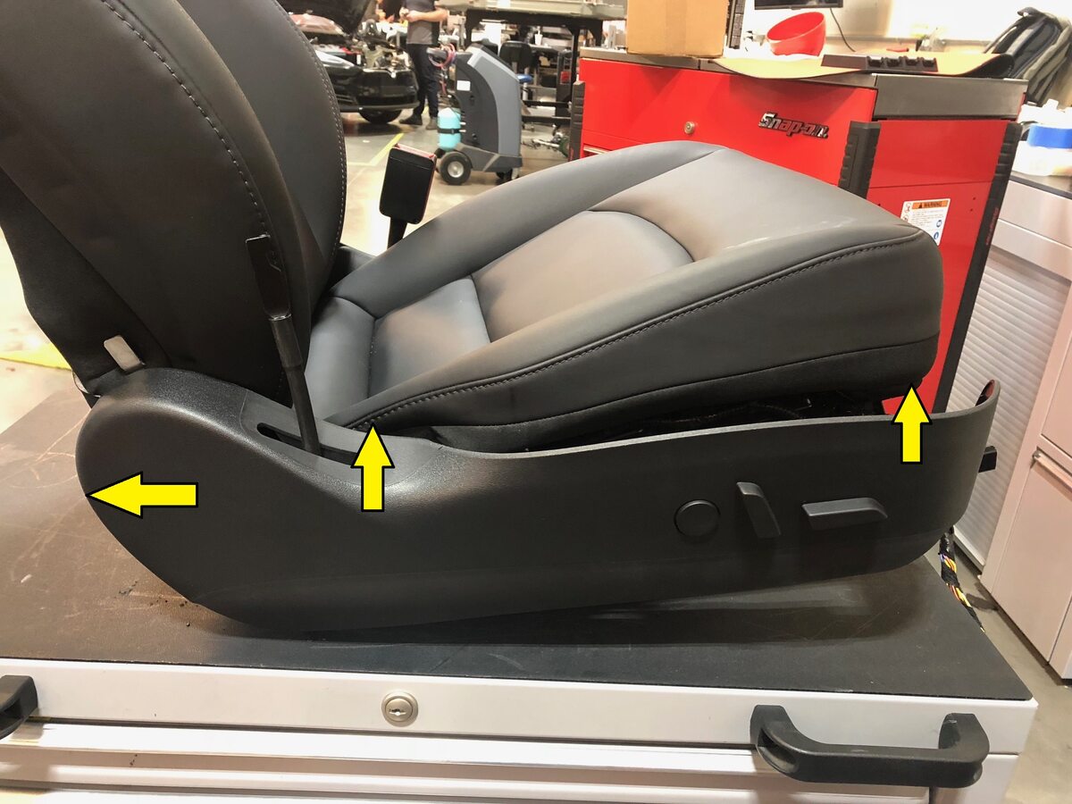 Note3x clips, Release side clip from seat bottom frame, then pull up on rear of trim to remove