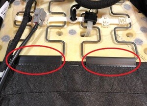 Note2x clips, The seat cushion and trim may need to be pulled tight for the hooks to achieve correct placement on the seat suspension