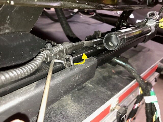 Remove the clip securing the harness to the seat cushion frame under the lift motor