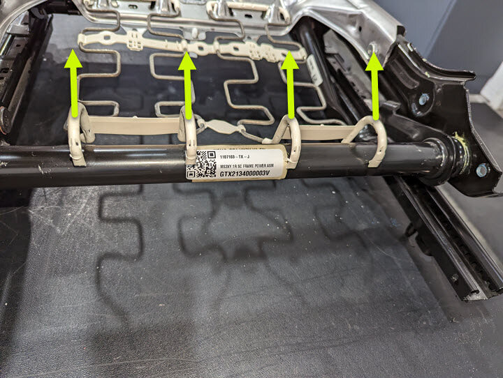 Install the clip securing the harness to the seat cushion frame under the lift motor