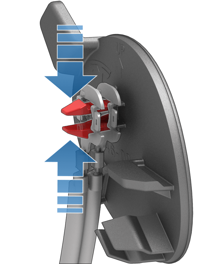 CAUTIONMake sure the red tabs are pushed in fully and locked in place.