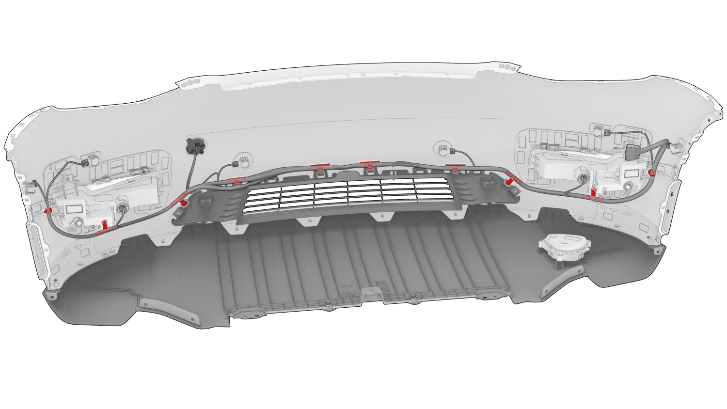 Install the clips (x10) that attach the front fascia harness to the front fascia.