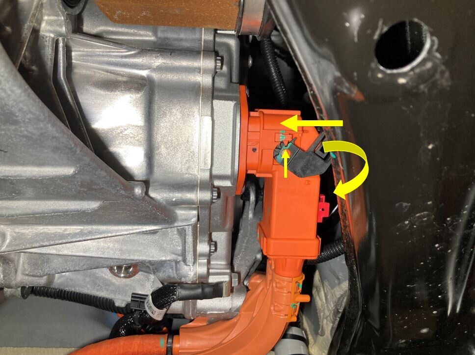 NoteVerify meter is zeroed out before performing measurement, Measure single cable. Verify ammeter is installed in correct direction. If current > 0.5A do not proceed with disconnecting HV connector. In this case, start vehicle electrical isolation again to make sure that all was properly shut down. Escalate for assistance as required if current < 0.5A, OK to disconnect and check voltage at HV plug on battery side.