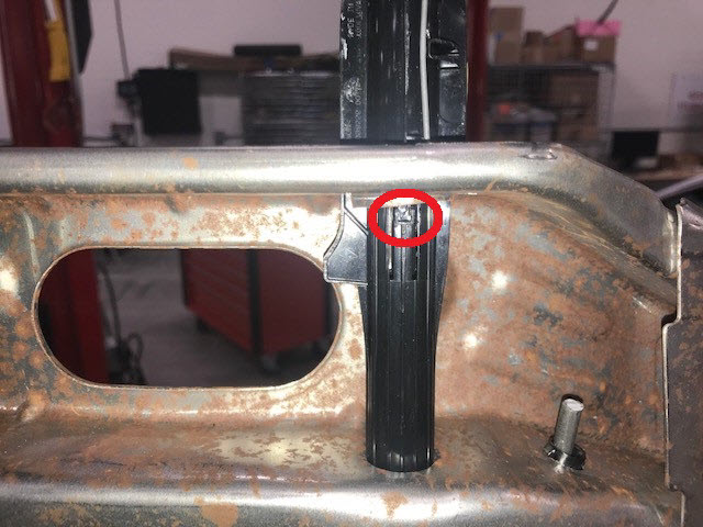 Remove the lower flap that covers the outboard corner of the front passenger seat