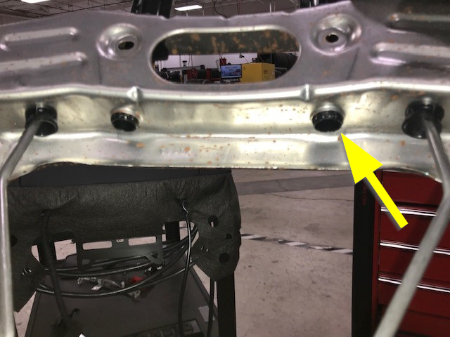 Remove the lower flap covering the inboard corner of the front passenger seat seat