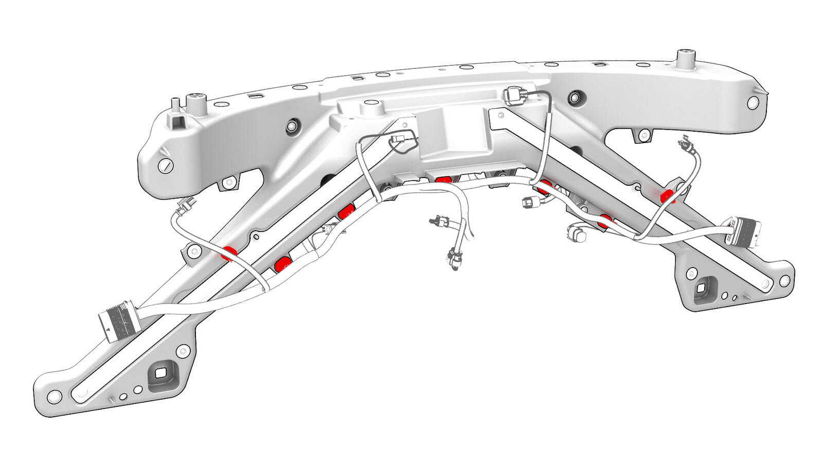 Connect the LH and RH front end carrier harness electrical connectors, and