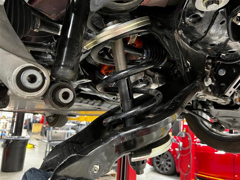 Install the Gedore spring compressor onto the LH rear spring.