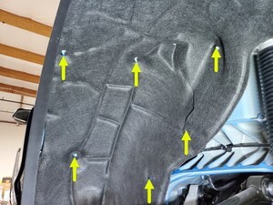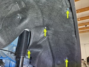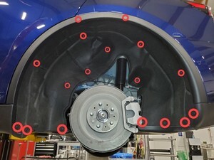 Install the push clips (x7), fan clips (x6) and metal clips (x4) that attach the LH rear wheel arch liner to the vehicle.