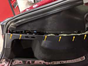 Note14x clips, Hold rear wall of frunk to keep from flexing while engaging front clips