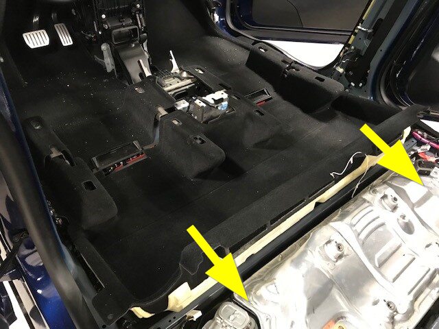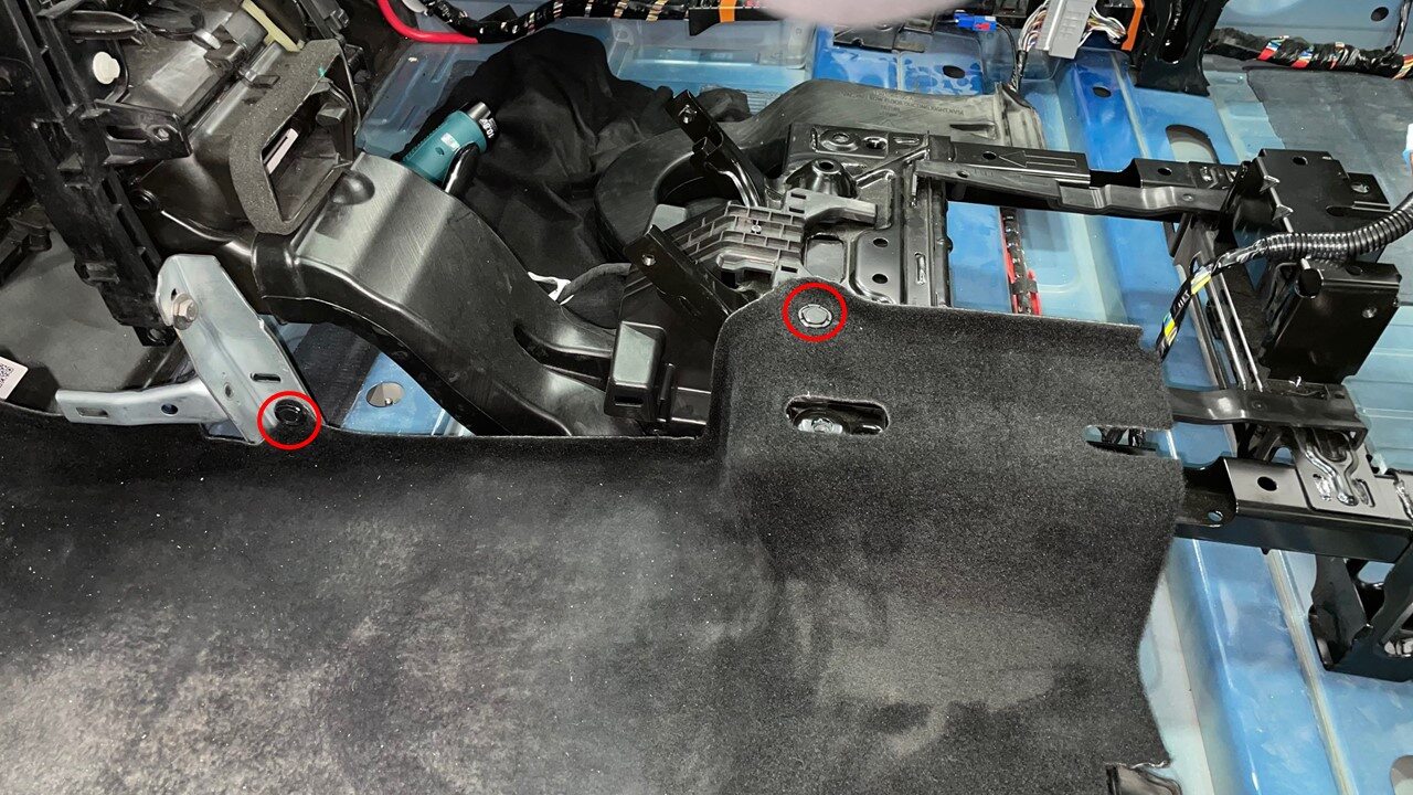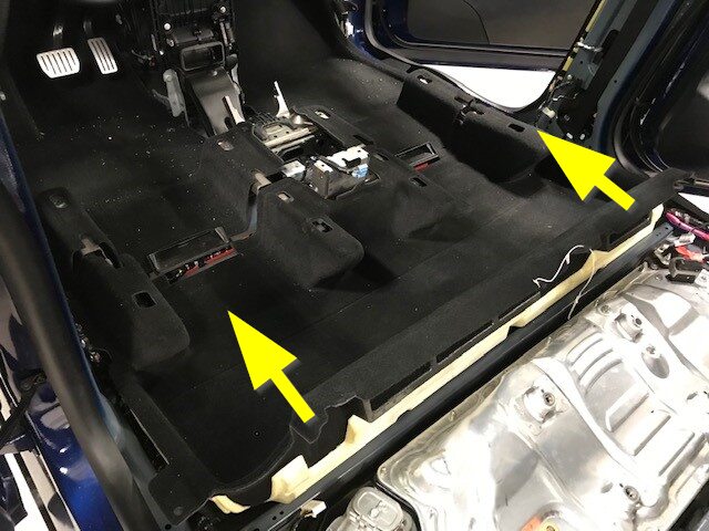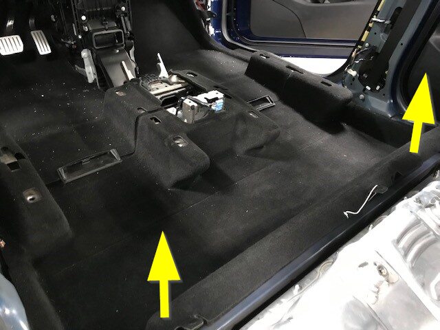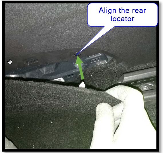 NotePosition rear main carpet to floorboard and slide forward, Ensure rear main carpet tucks beneath front main carpet and air duct