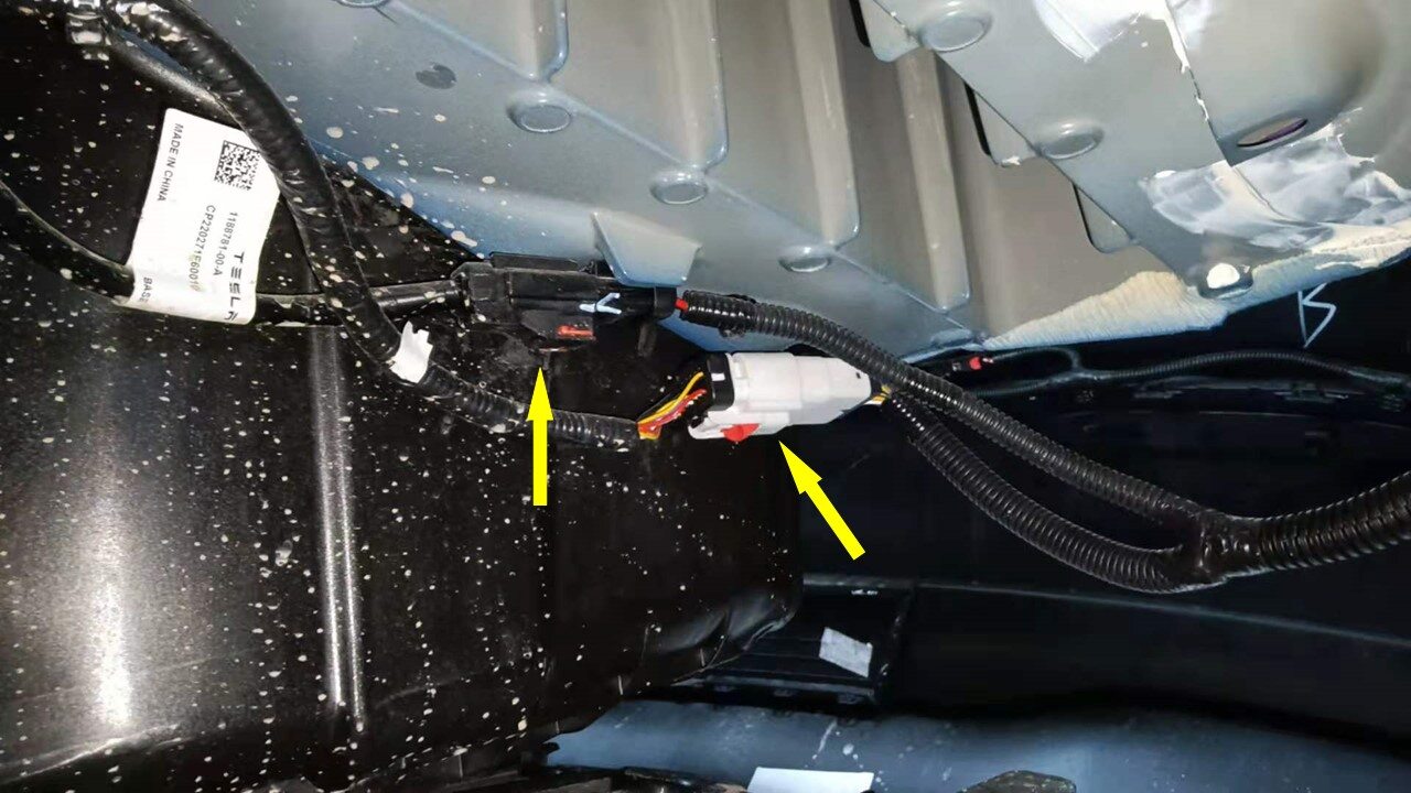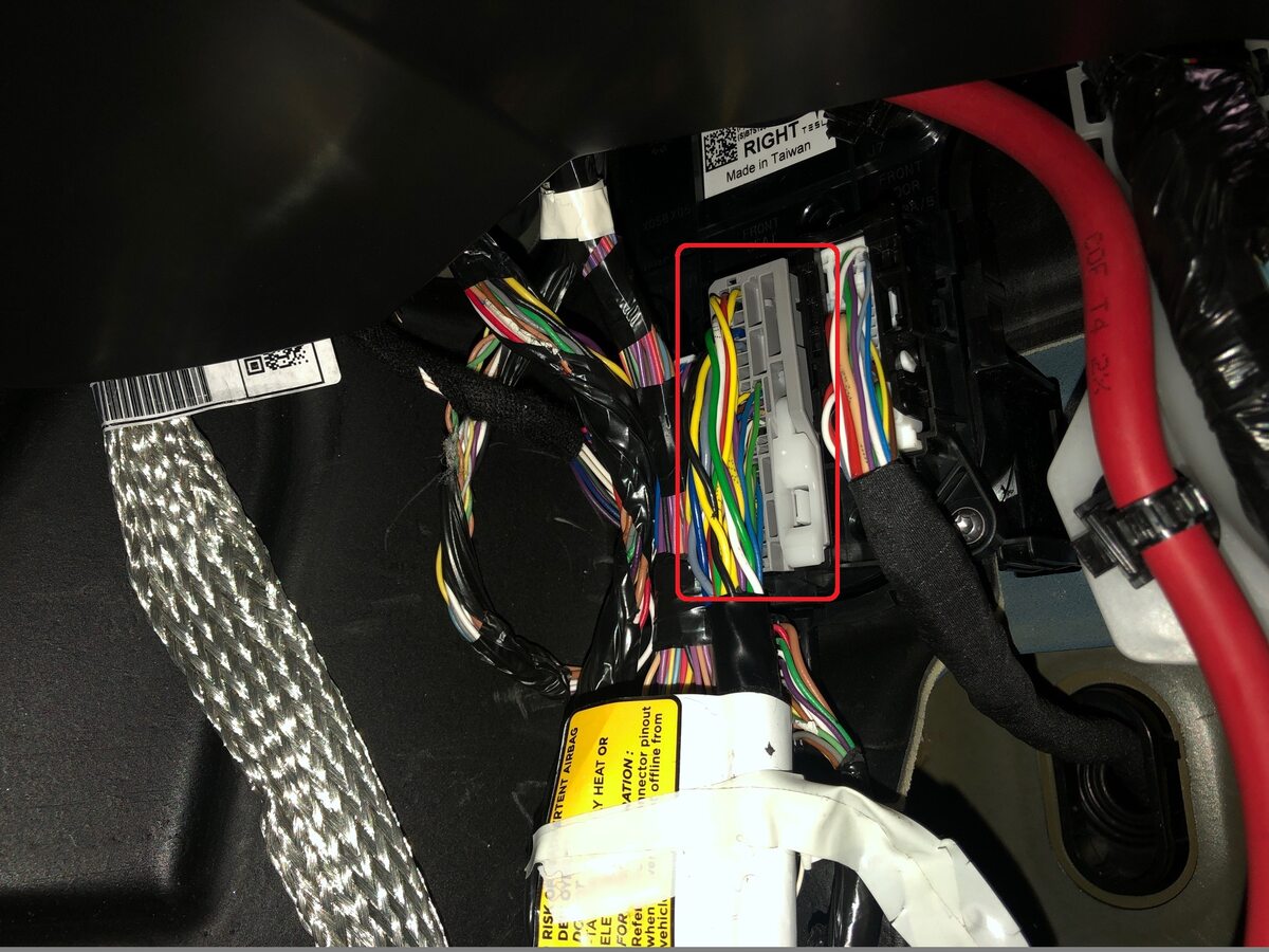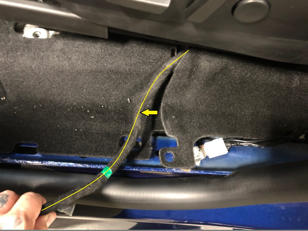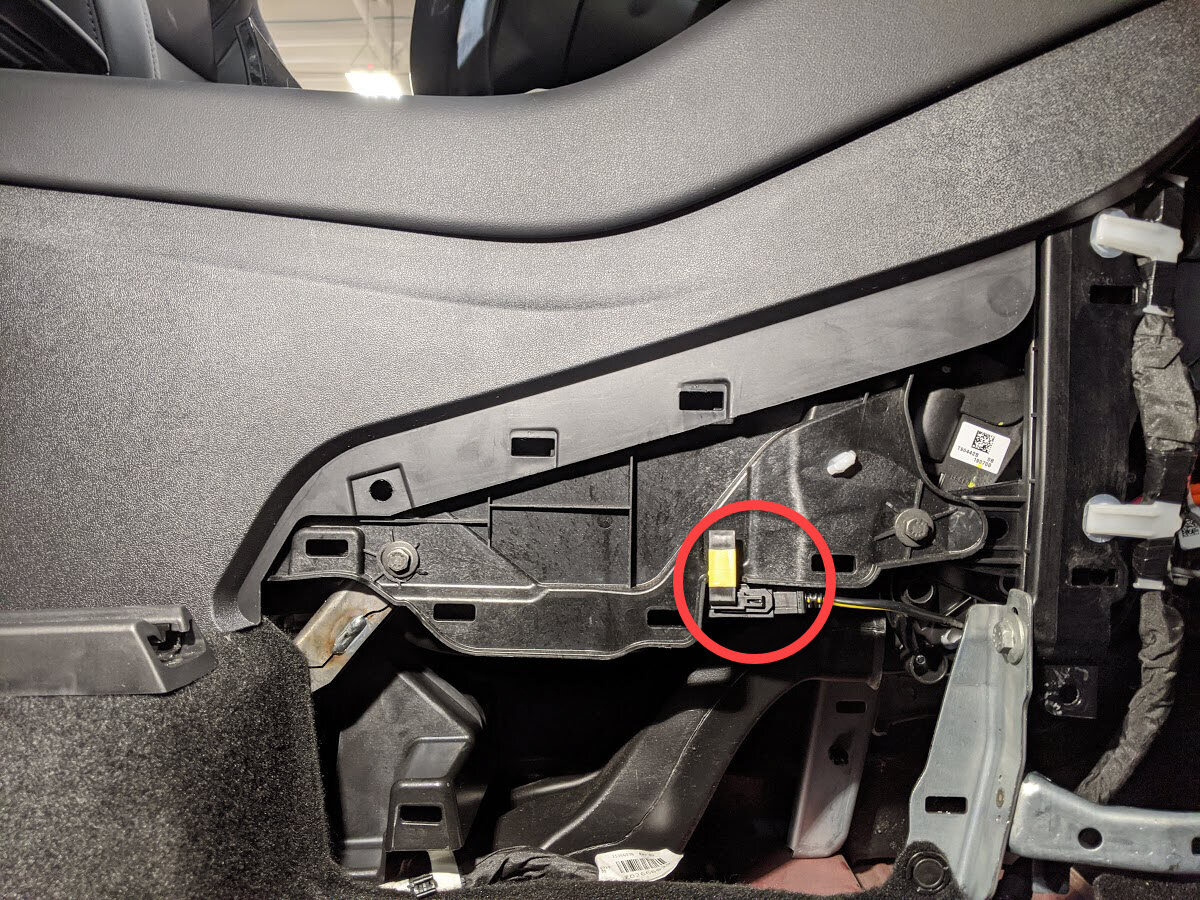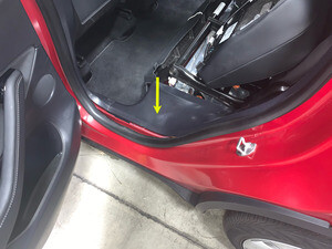 Pull RH front cabin carpet away from A-pillar to access RH front seat connector