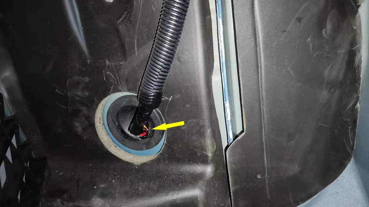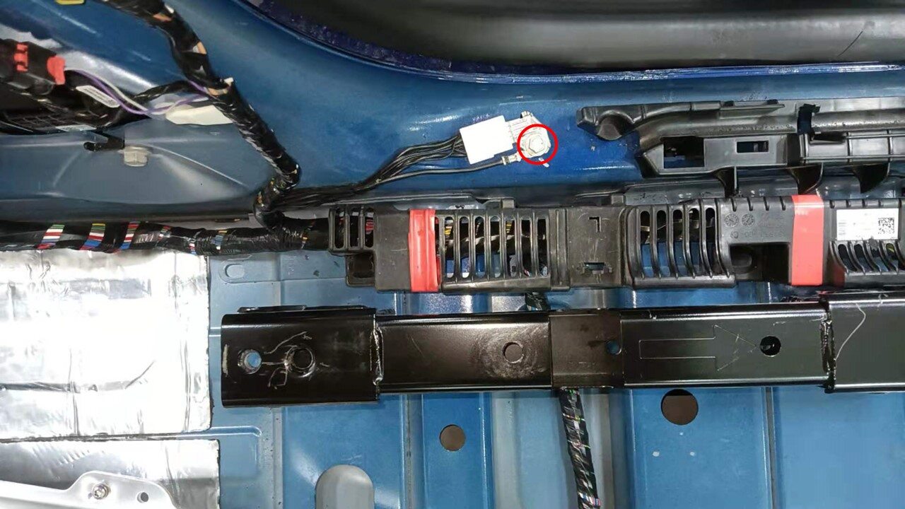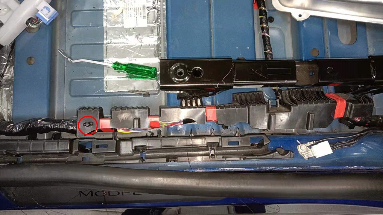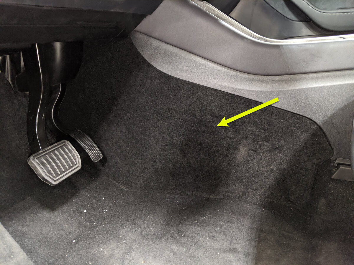Pull RH front cabin carpet away from A-pillar to access RH front seat connector