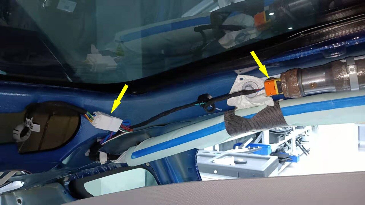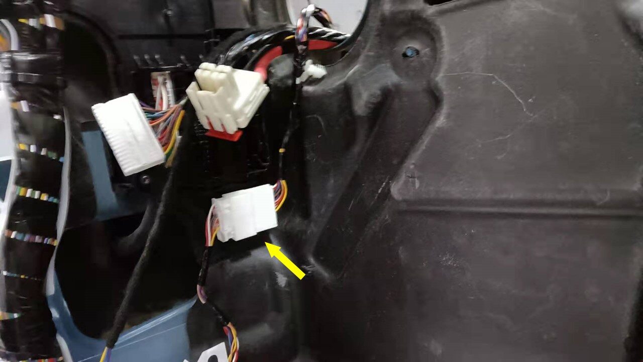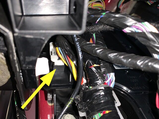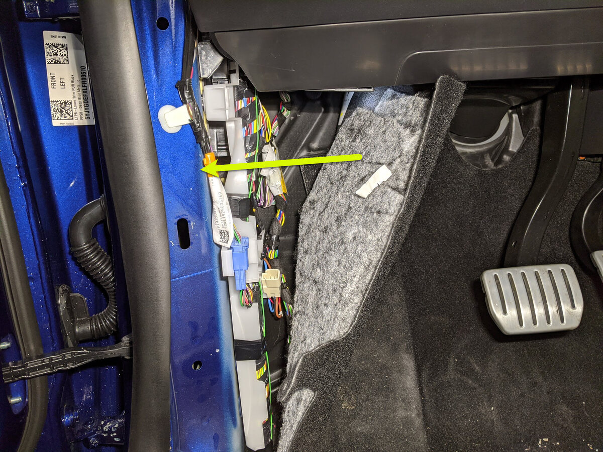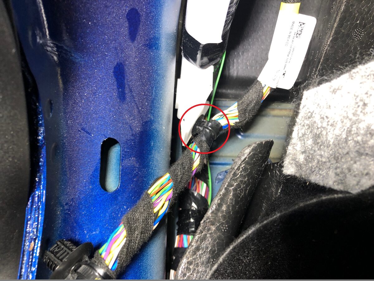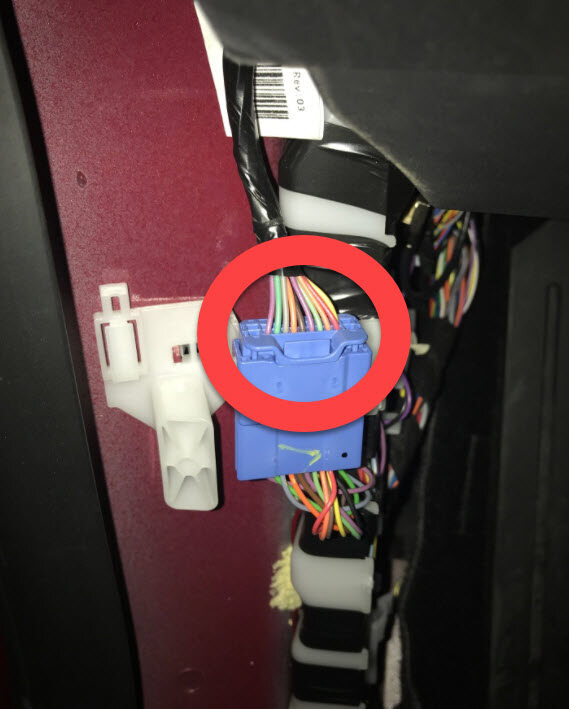 Pull LH front cabin carpet away from A-pillar to access LH front seat connector