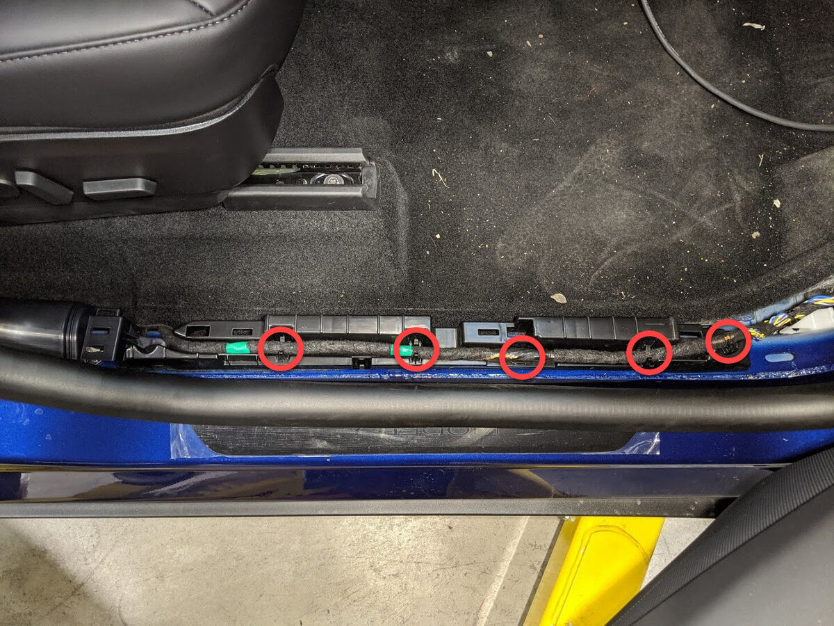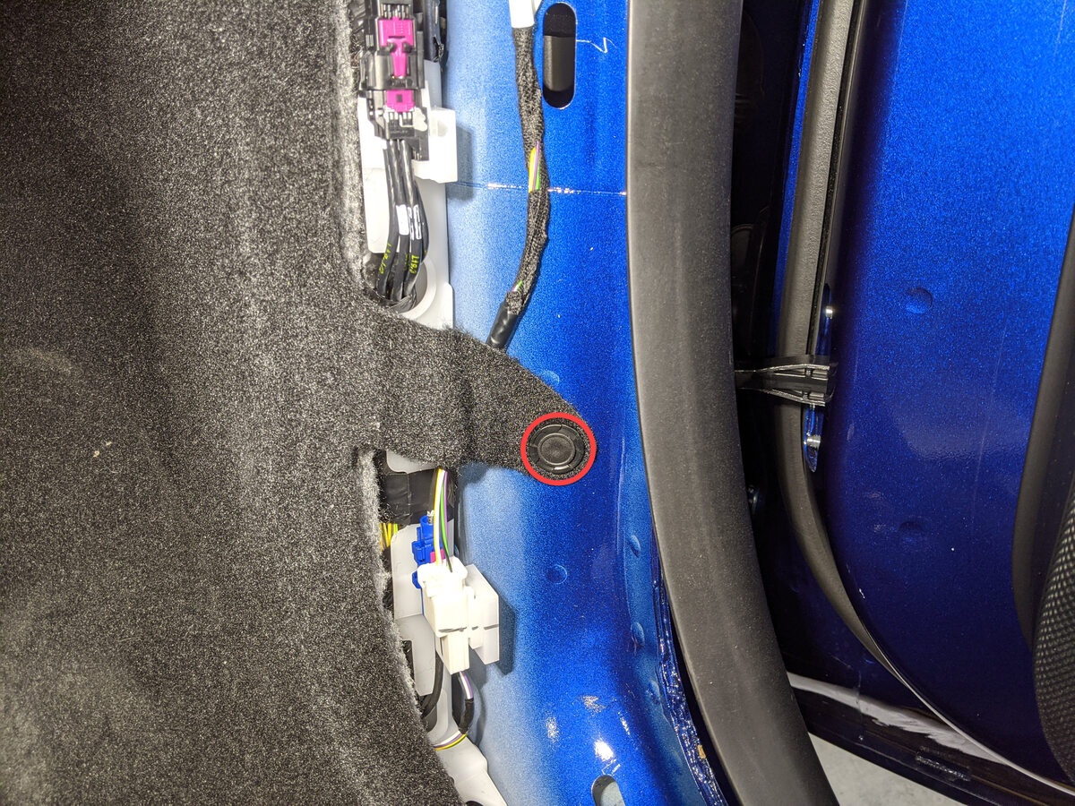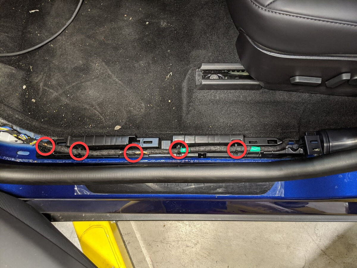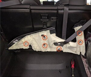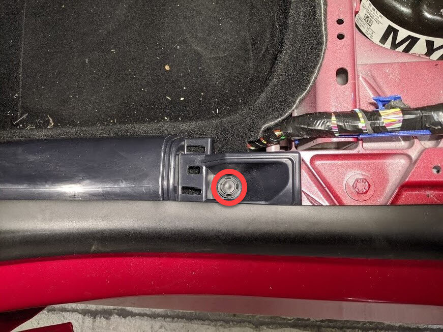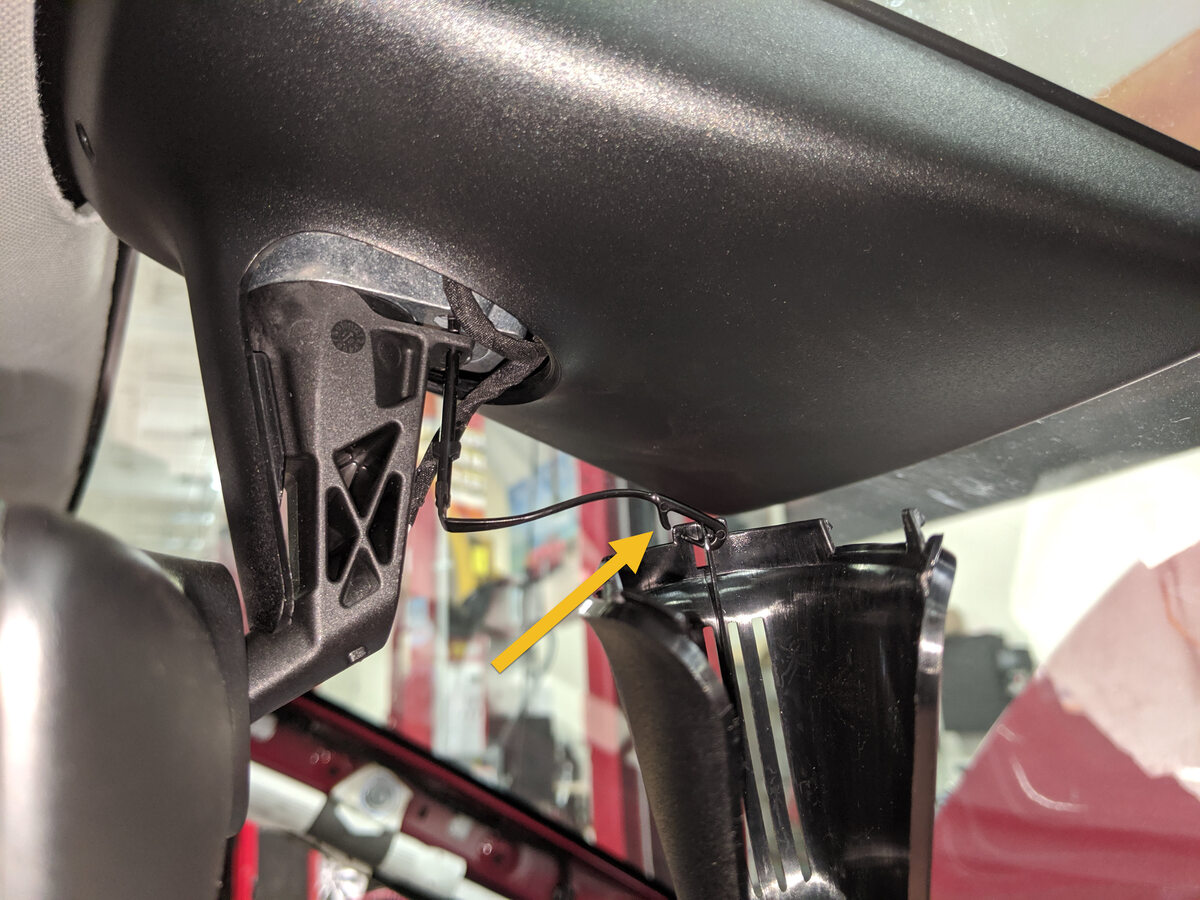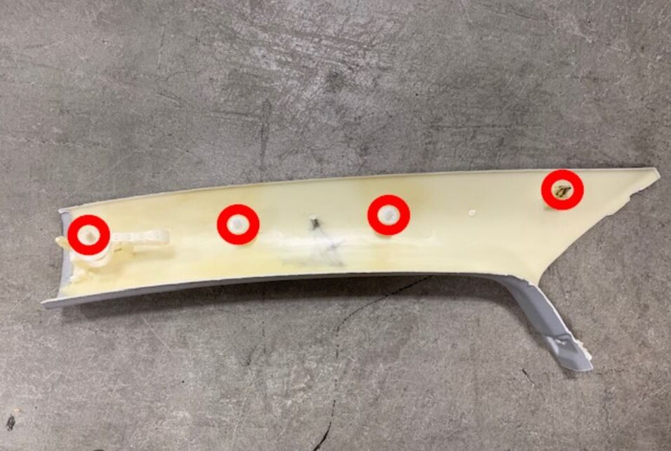 Note1x push clip, Clip goes through B-pillar and rear cabin carpet