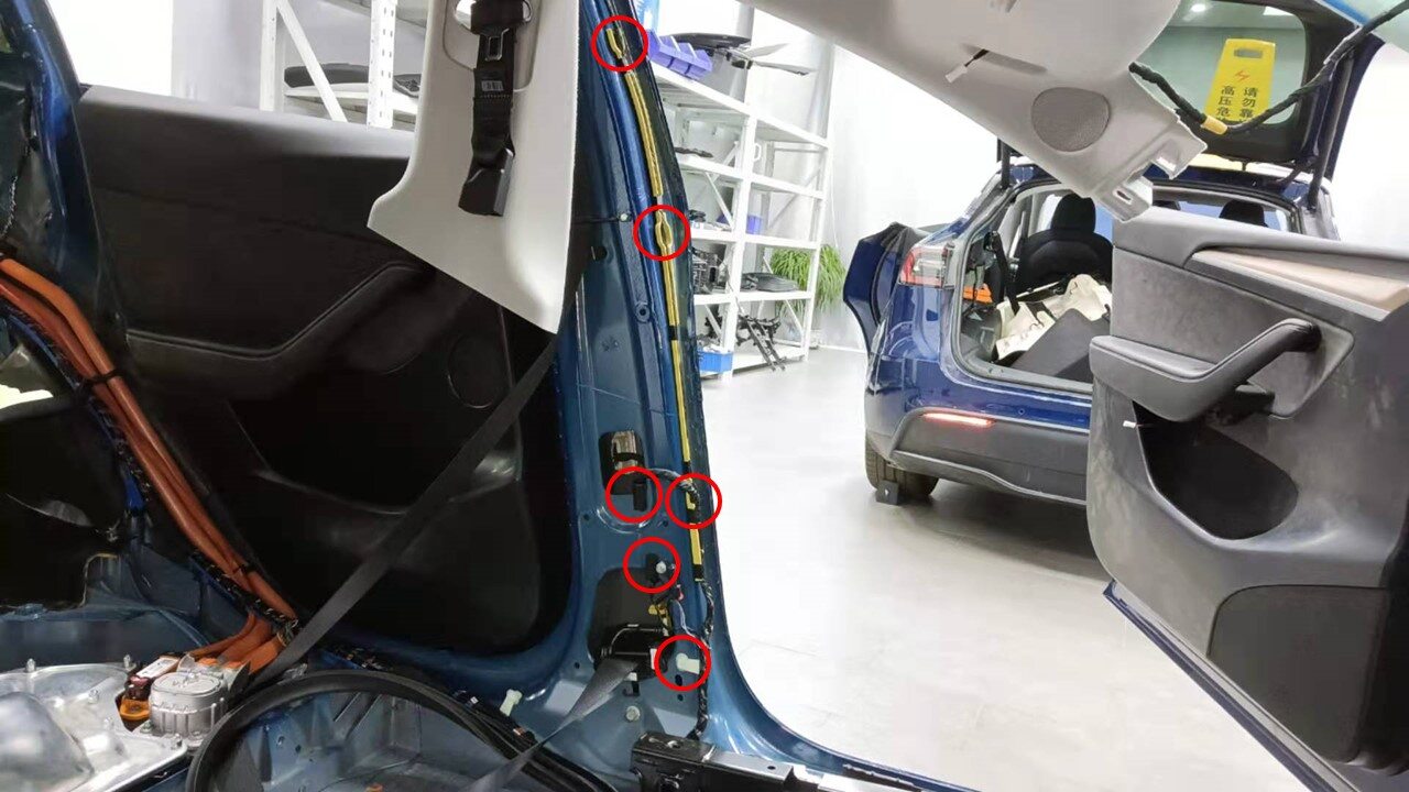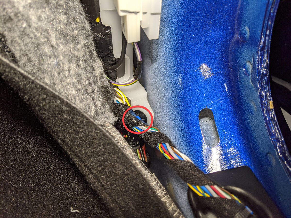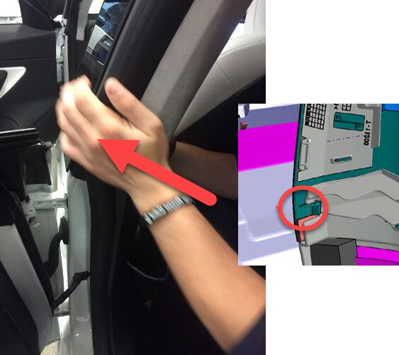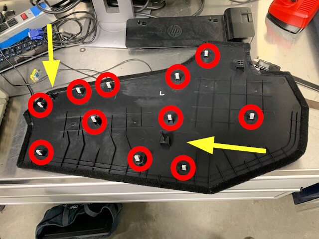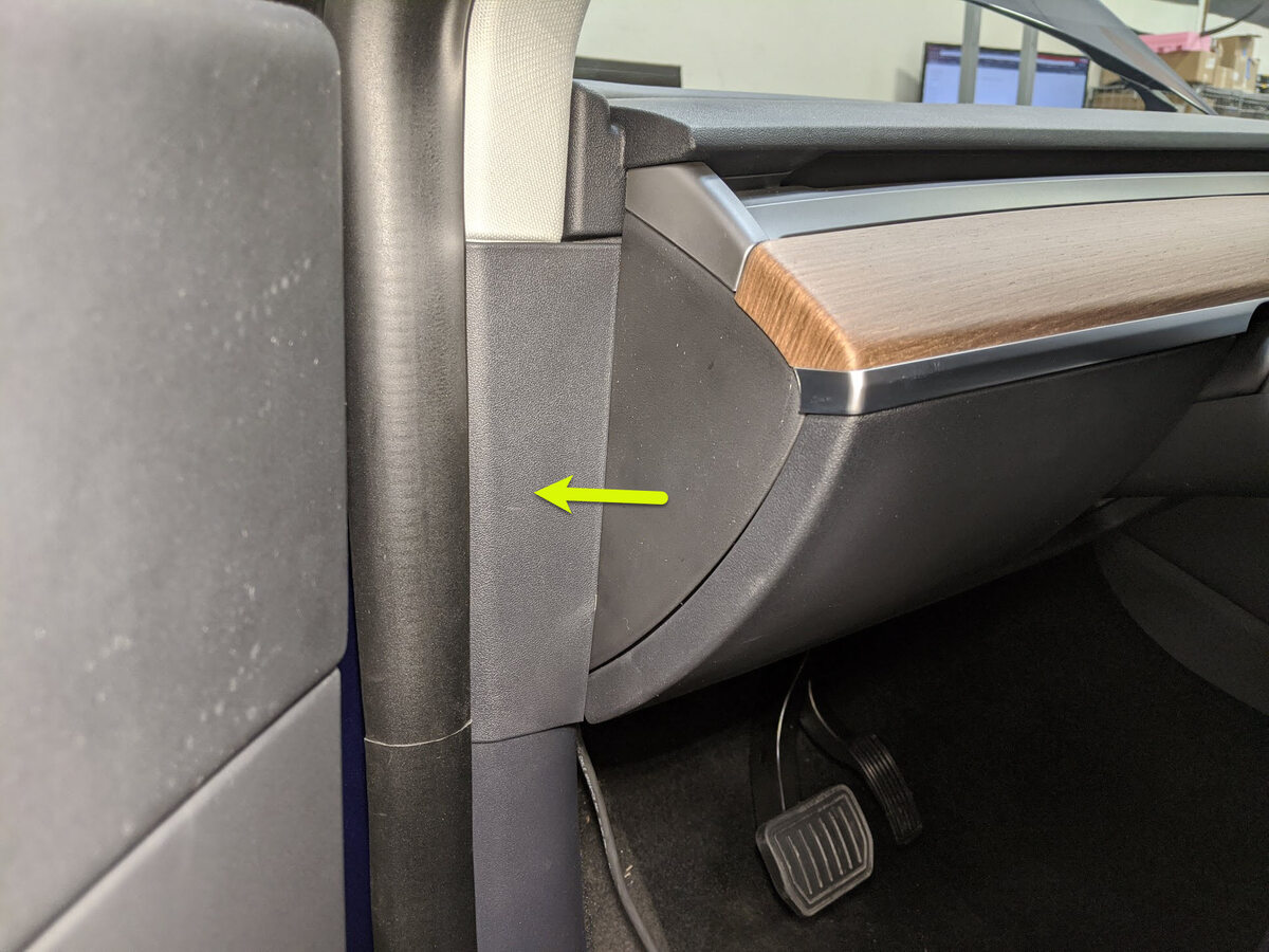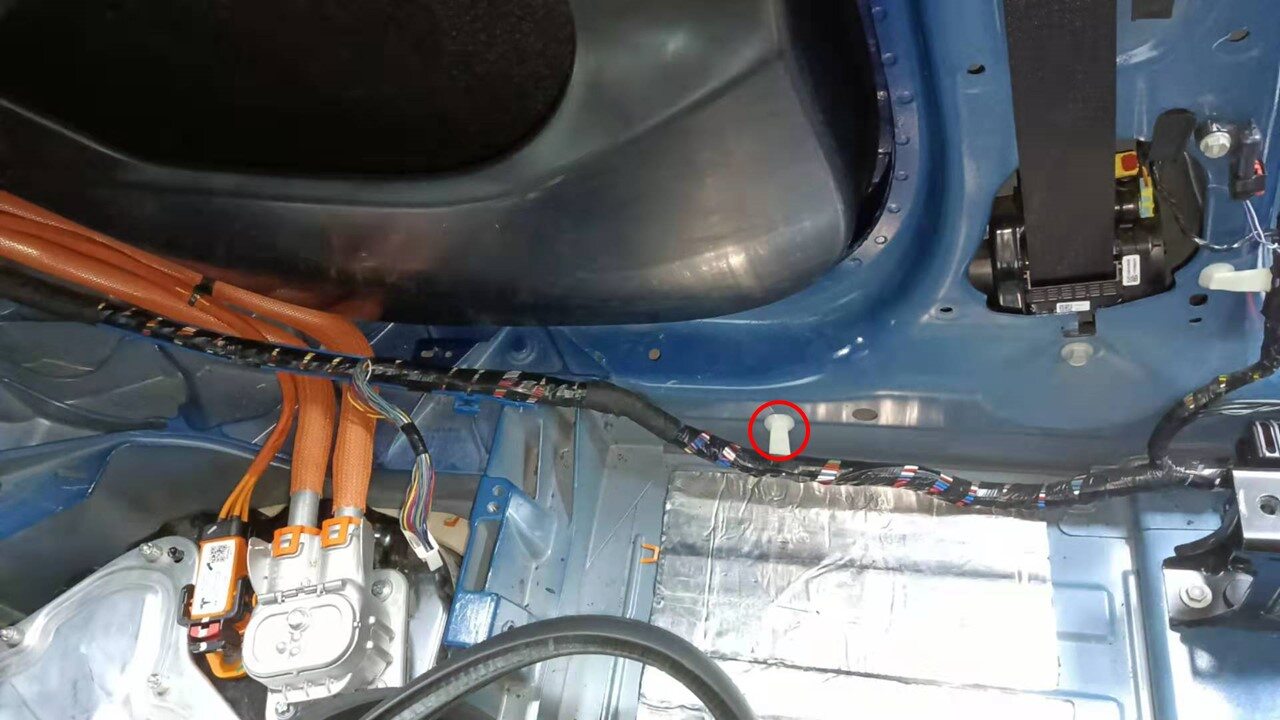 Note1x push clip, Clip goes through B-pillar and rear cabin carpet