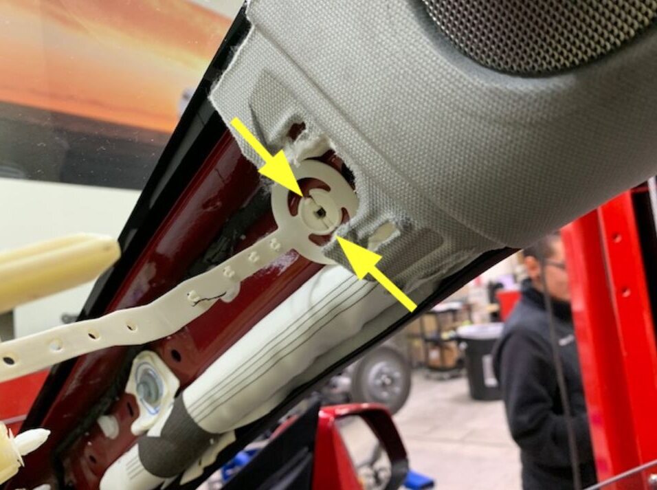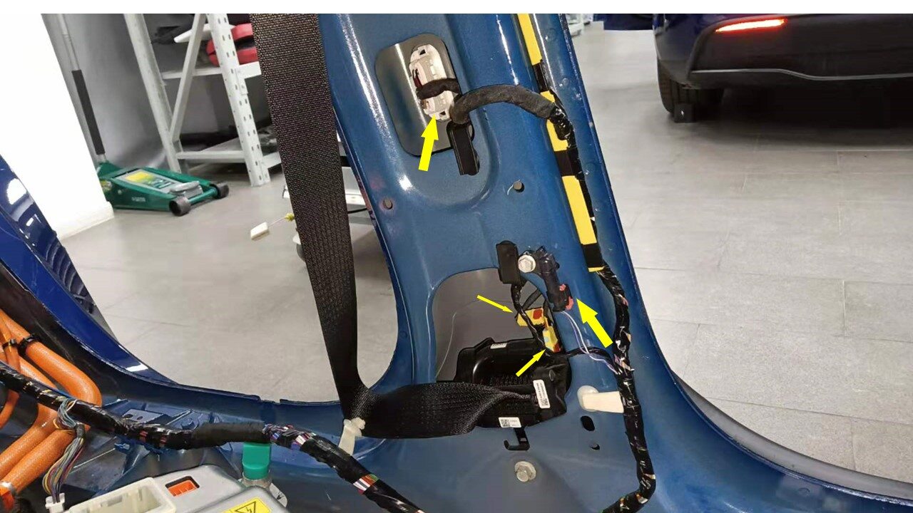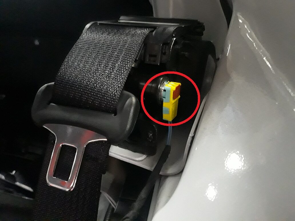 NoteInsert retractor into seat pre tensioner, Make sure it locks into position with push-pull-push test