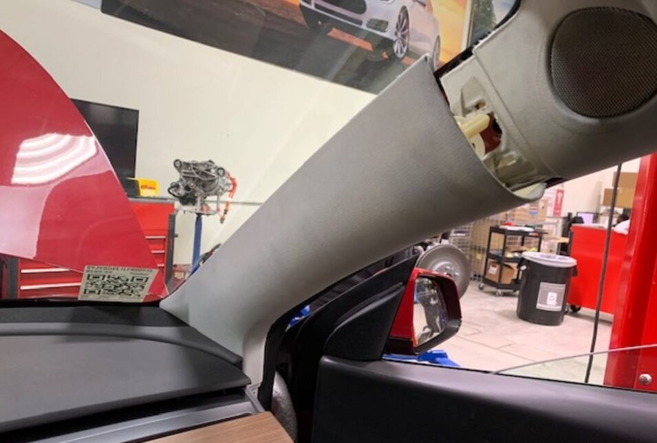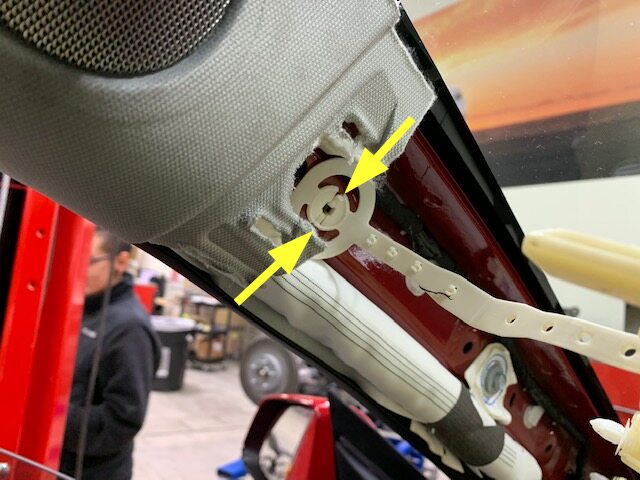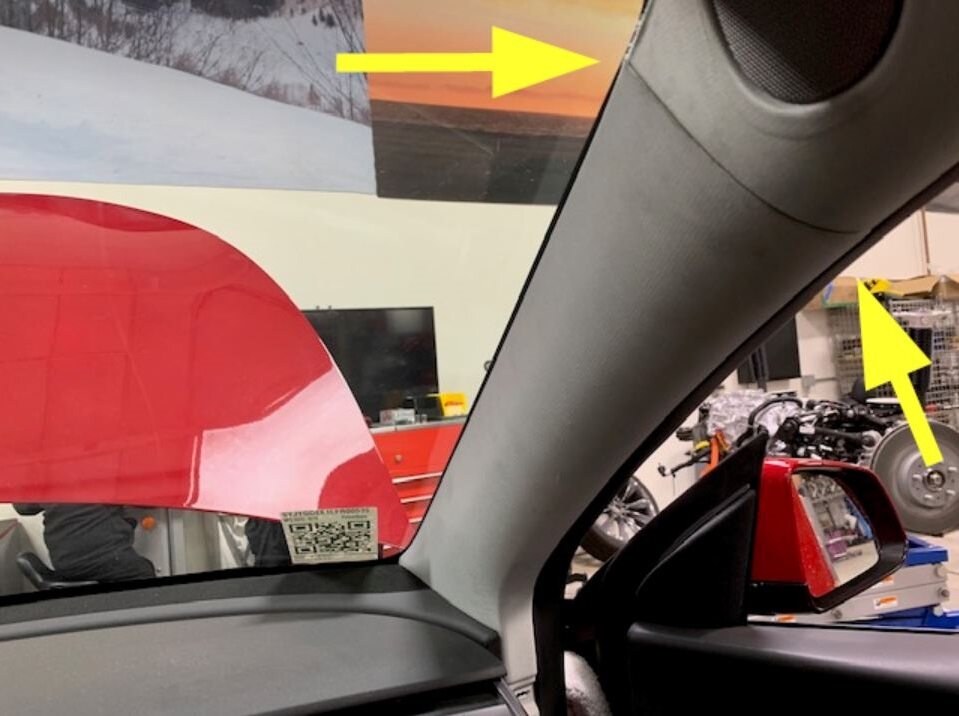 Note6x clips, Guide front upper corner groove out from headliner and place trim aside