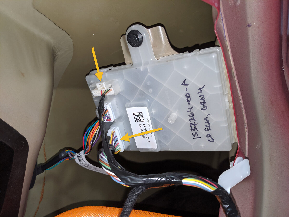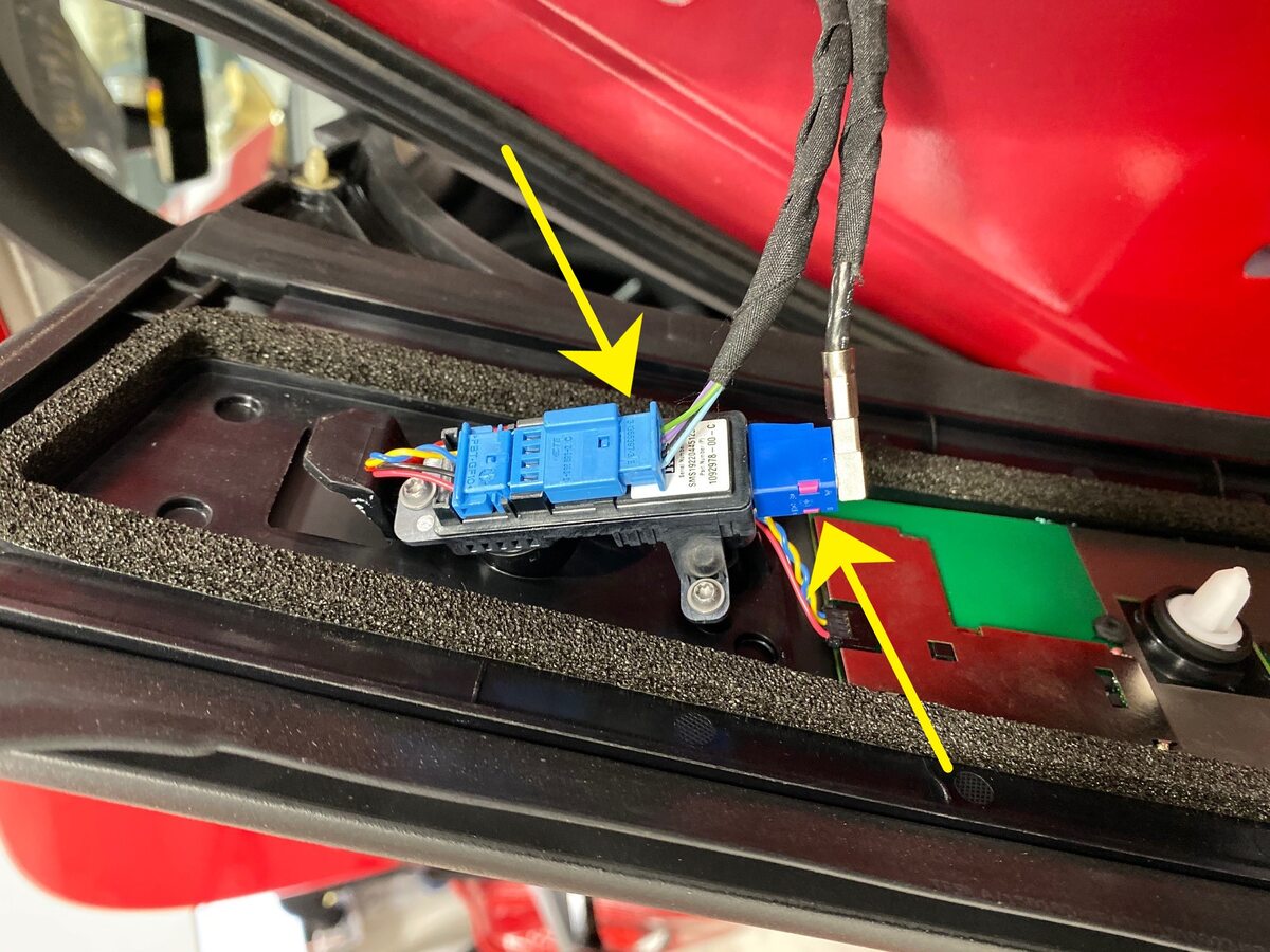 Note1x nut, 10mm, 6 Nm, 1x connector, Engage locking tab, Connect FRL first before connecting 12V to avoid damage to car computer