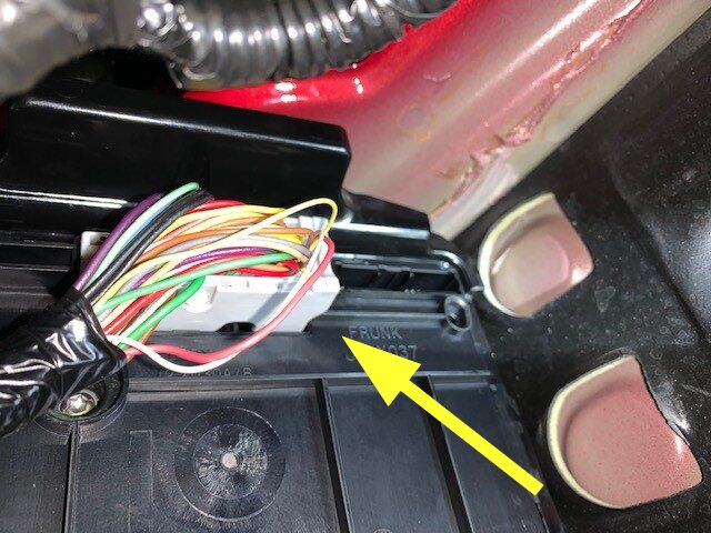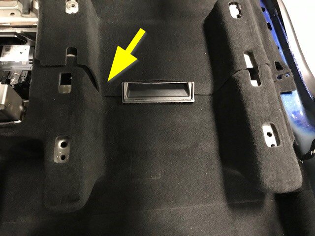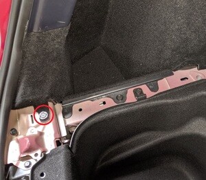 Release top edge of LH trunk side trim and disconnect 12V outlet and trunk switch connectors