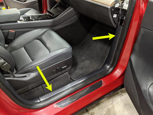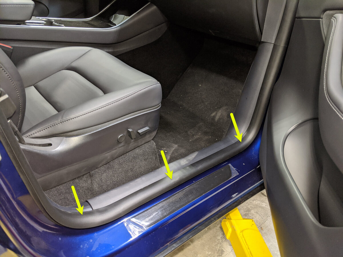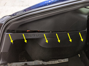 Note5x clips, Rear edge is mated with groove in trunk side trim, Install rear edge of RH rear sill trim into trunk side trim and work your way forward securing clips