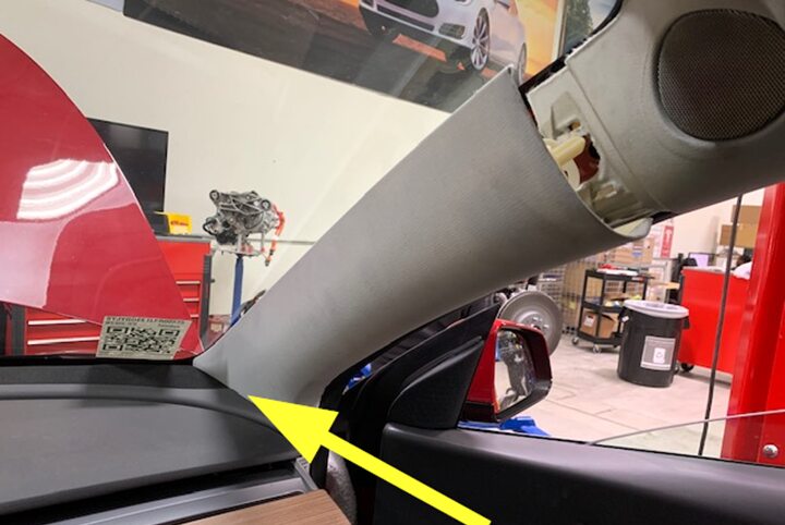 Note1x clip, 1x tab, Release the upper clip then pull mid A-pillar upward to remove