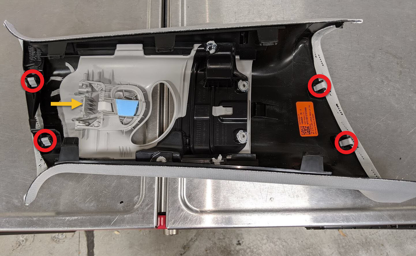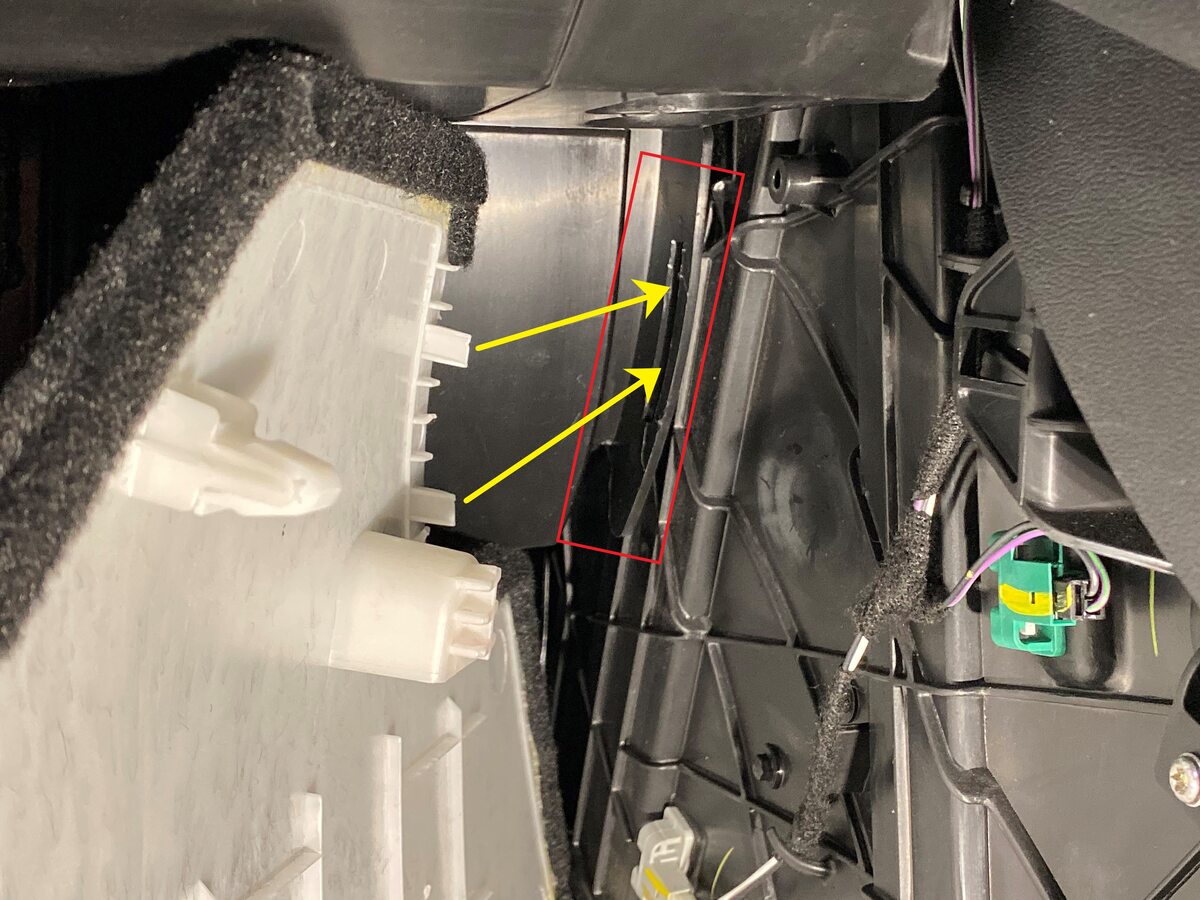 Note11x clips, 2x guide pins, Use trim tool starting at top edge to release upper clips, then pull bottom to release remaining clips, Use caution and pull panel straight away from console, if panel is peeled off it could be damaged