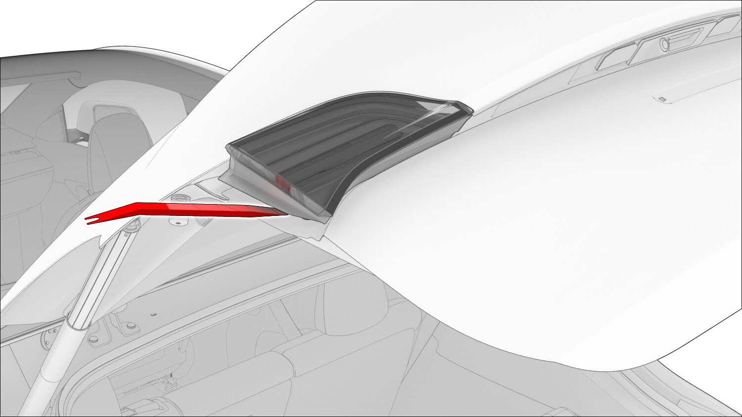 Use a plastic trim tool on the outboard side of the light to release the anchors on the light from the grommets on the liftgate.