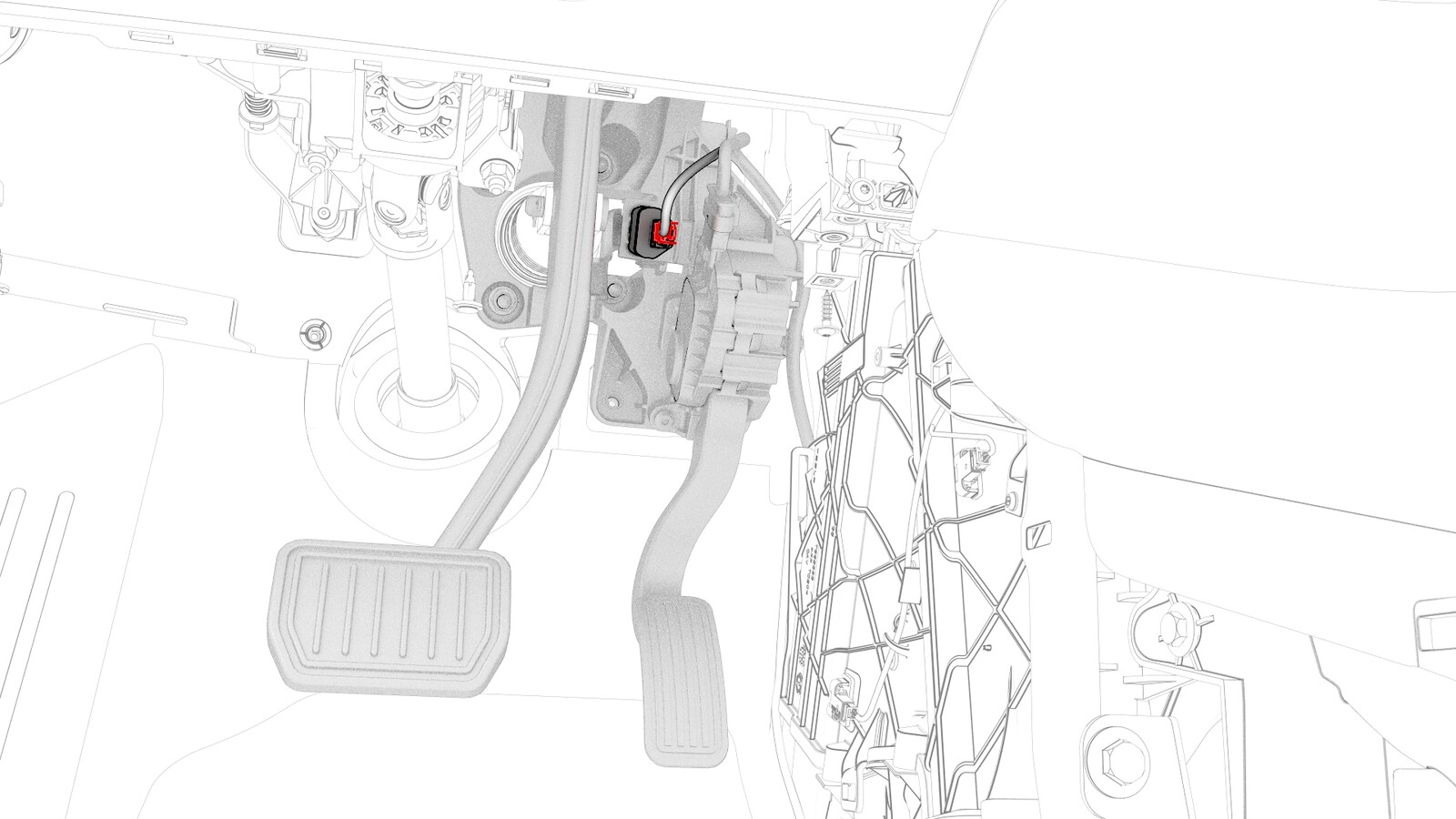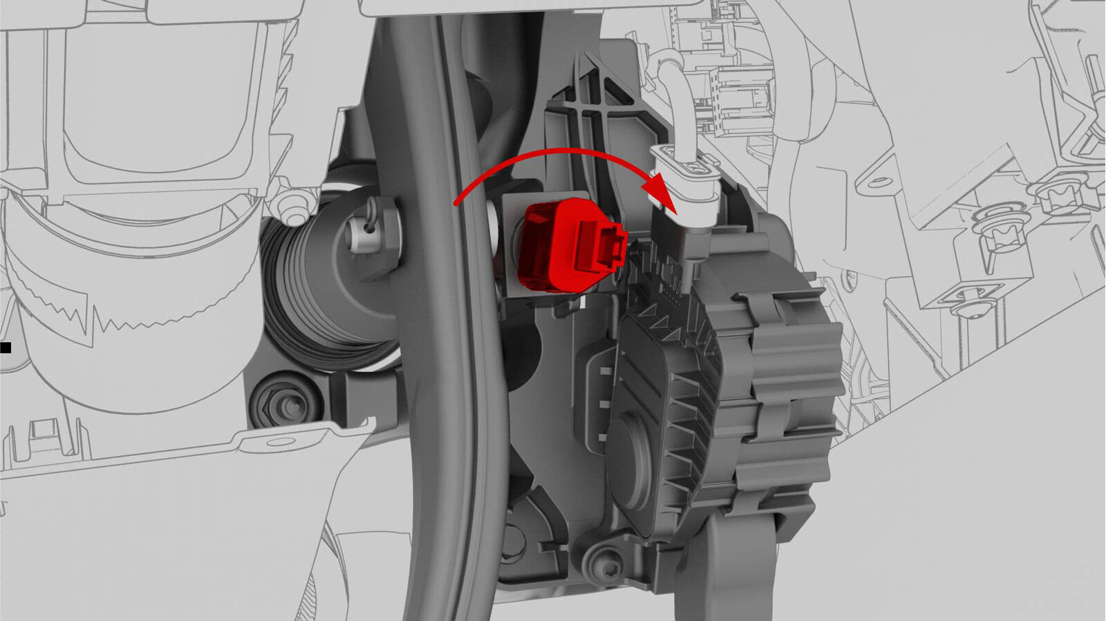 Connect the electrical harness to the brake light switch connector, and then perform a push-pull-push check to make sure the connection is secure.