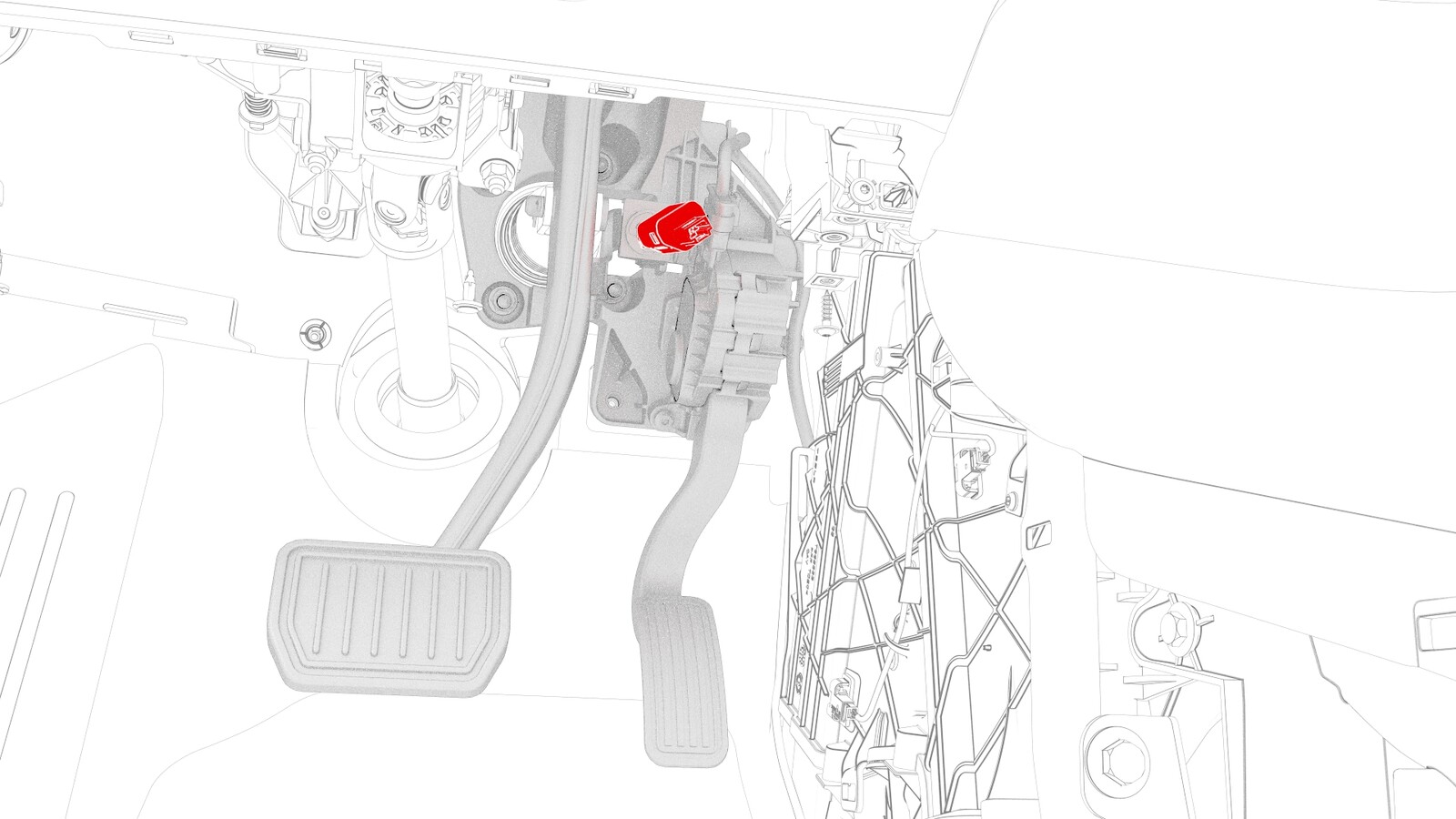 Rotate the switch 45 degrees clockwise to secure the brake light switch in the accelerator and brake pedal assembly.
