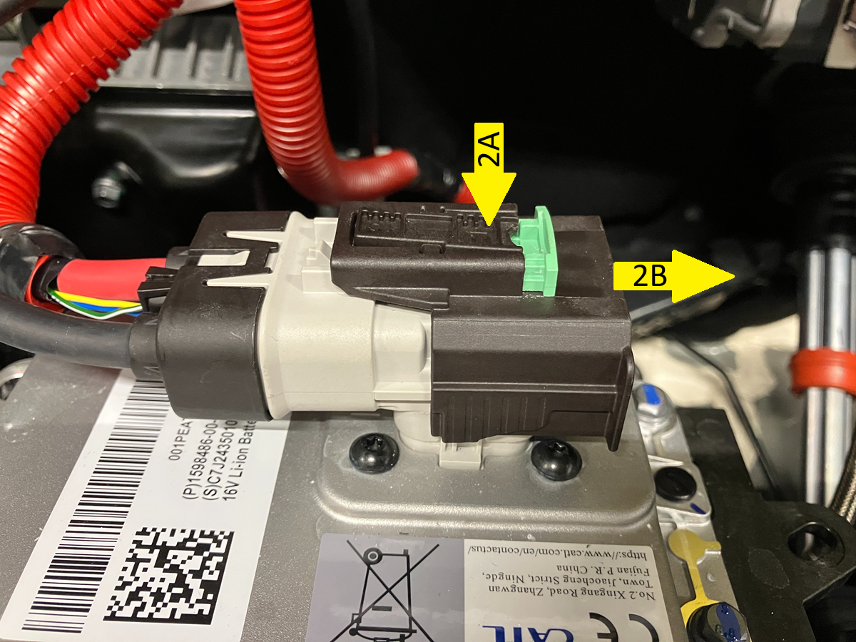 - Press the black locking tab numbered as "1" (2A), and then pull