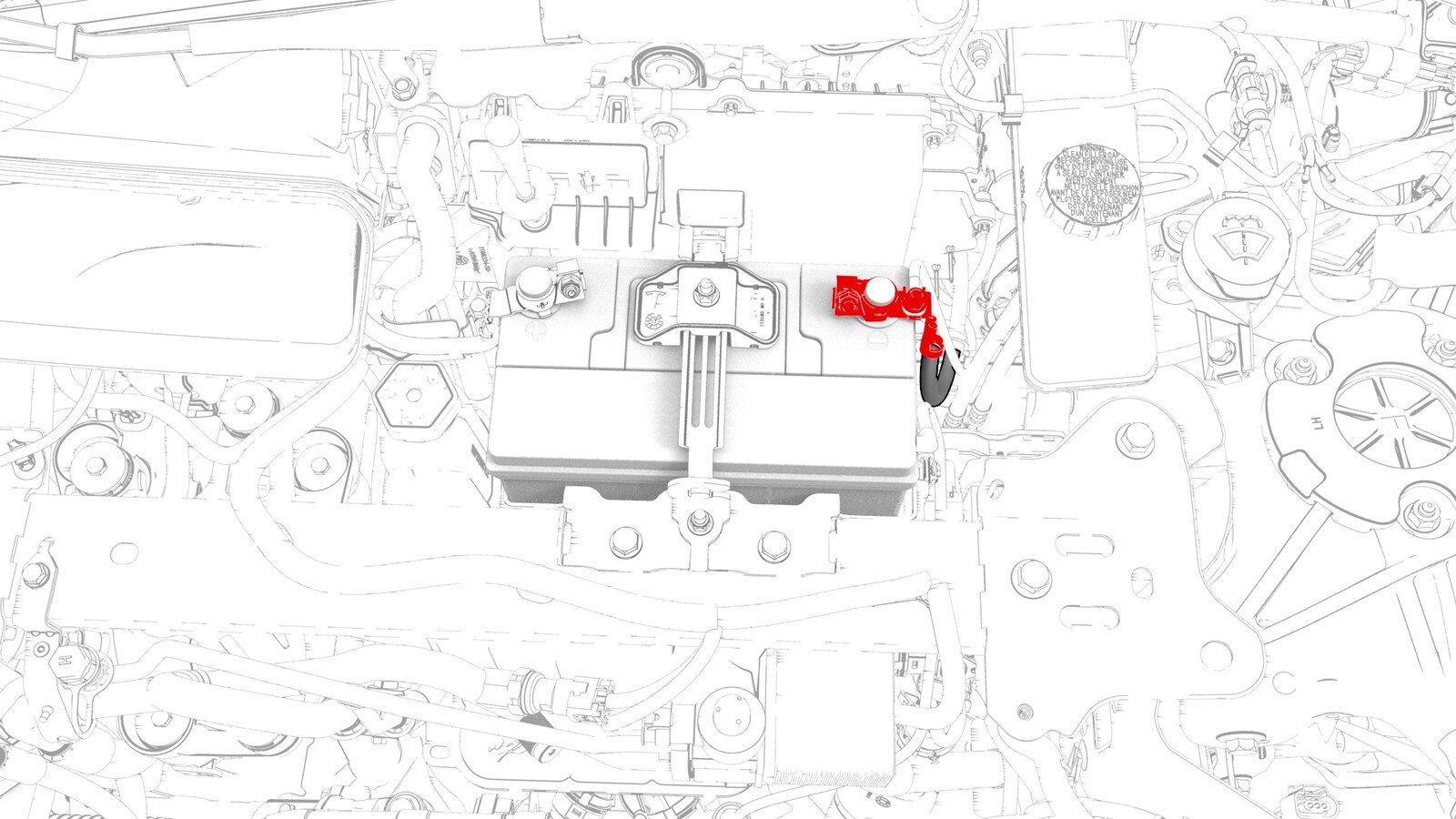- Connect the 12V battery negative cable to the battery, press down to firmly seat the terminal clamp onto the battery post.