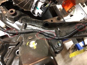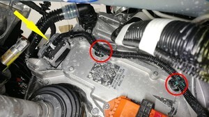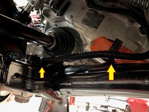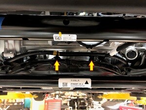 Secure the clips (x2) that attach the front drive unit harness in front of the front
