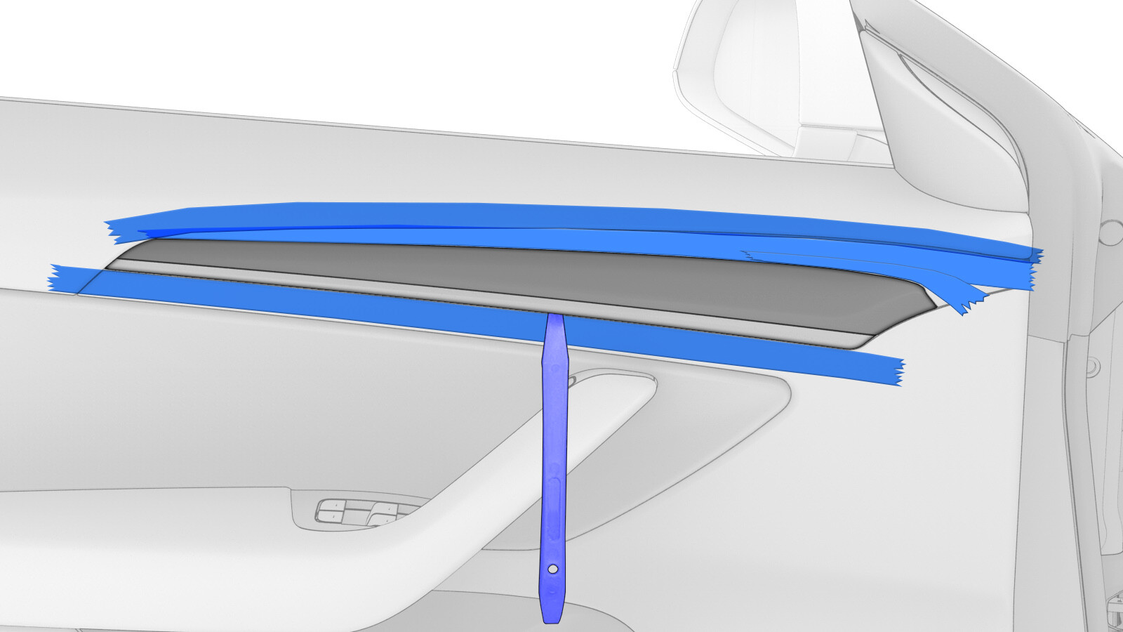 Apply tape around LH front door trim decor.