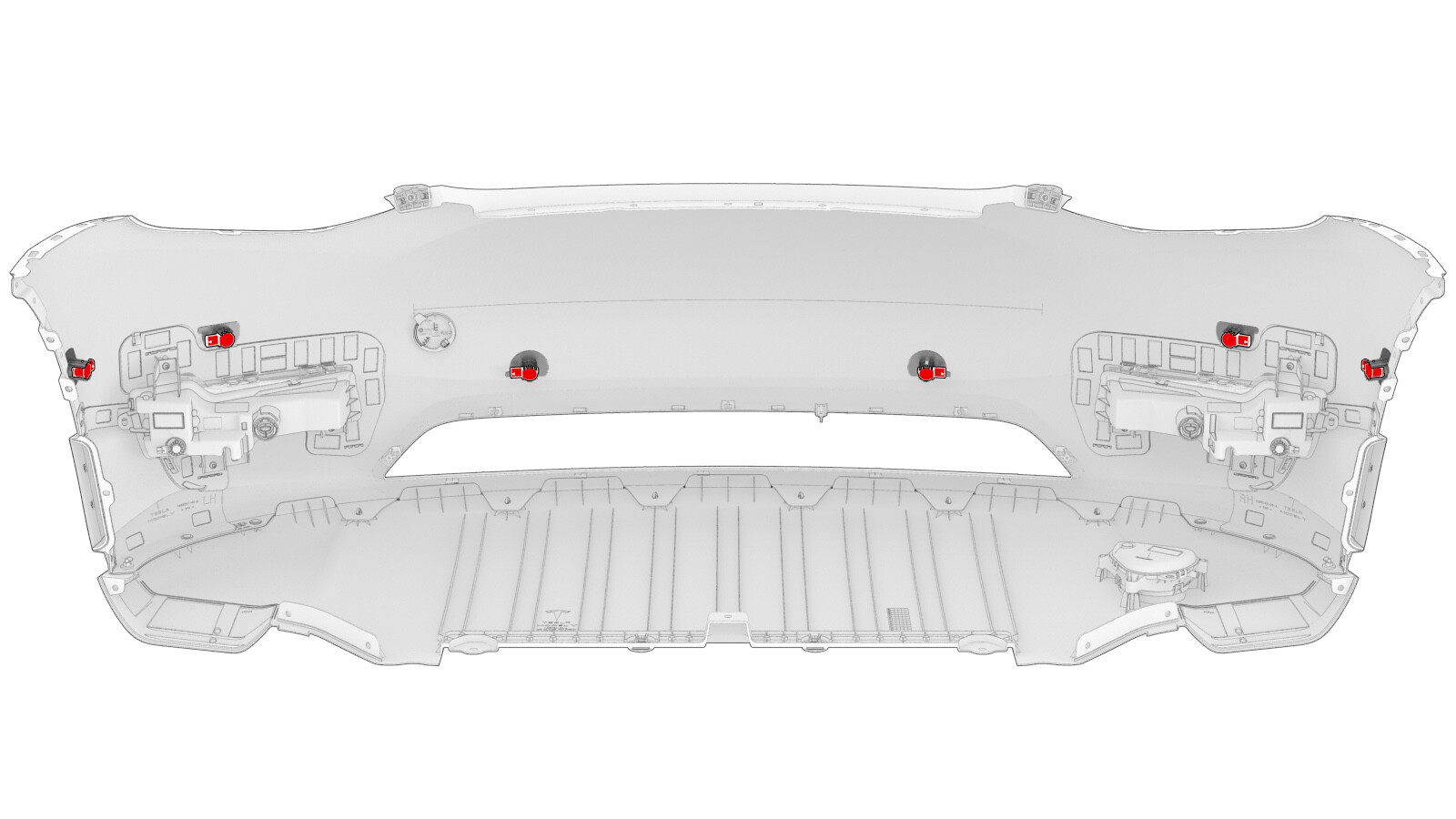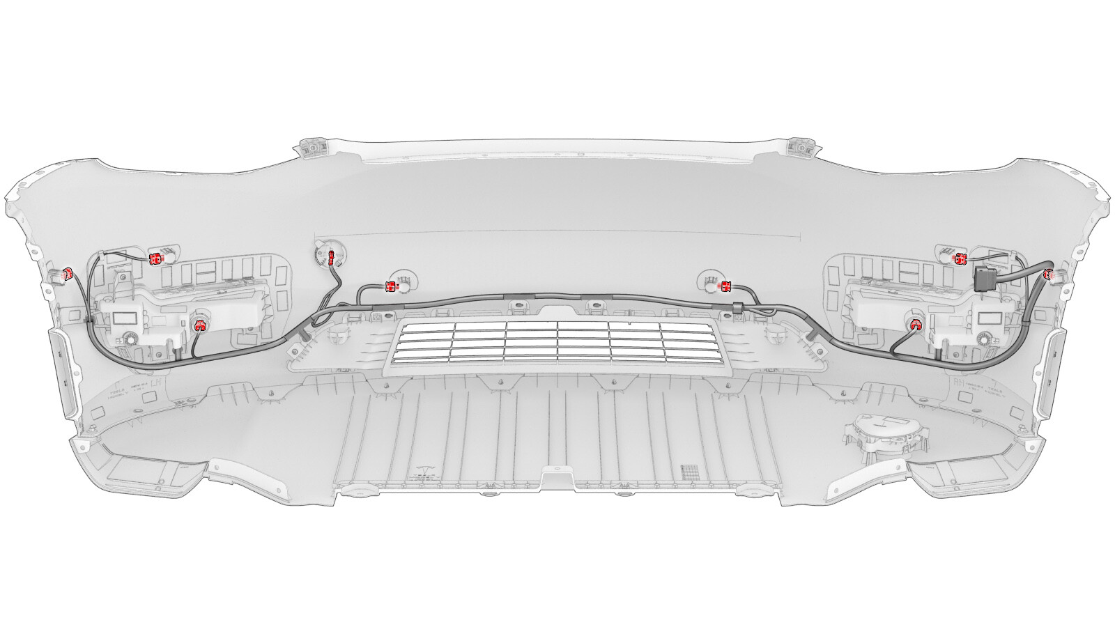 the electrical connectors (x8) for the front fascia harness, and then engage