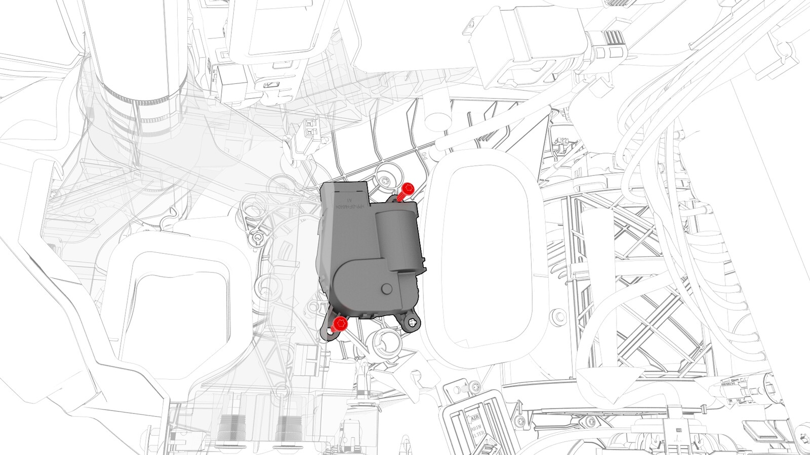- Position the upper mode actuator onto the HVAC assembly; align the guide and push the actuator towards the left to install.