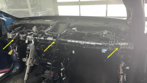 | Bolts (x5) that attach the cross car beam to the HVAC assembly |