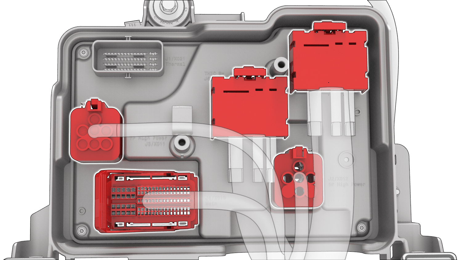 harness connectors (x5) to the front body controller module.