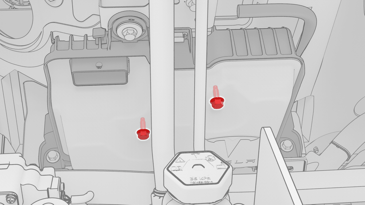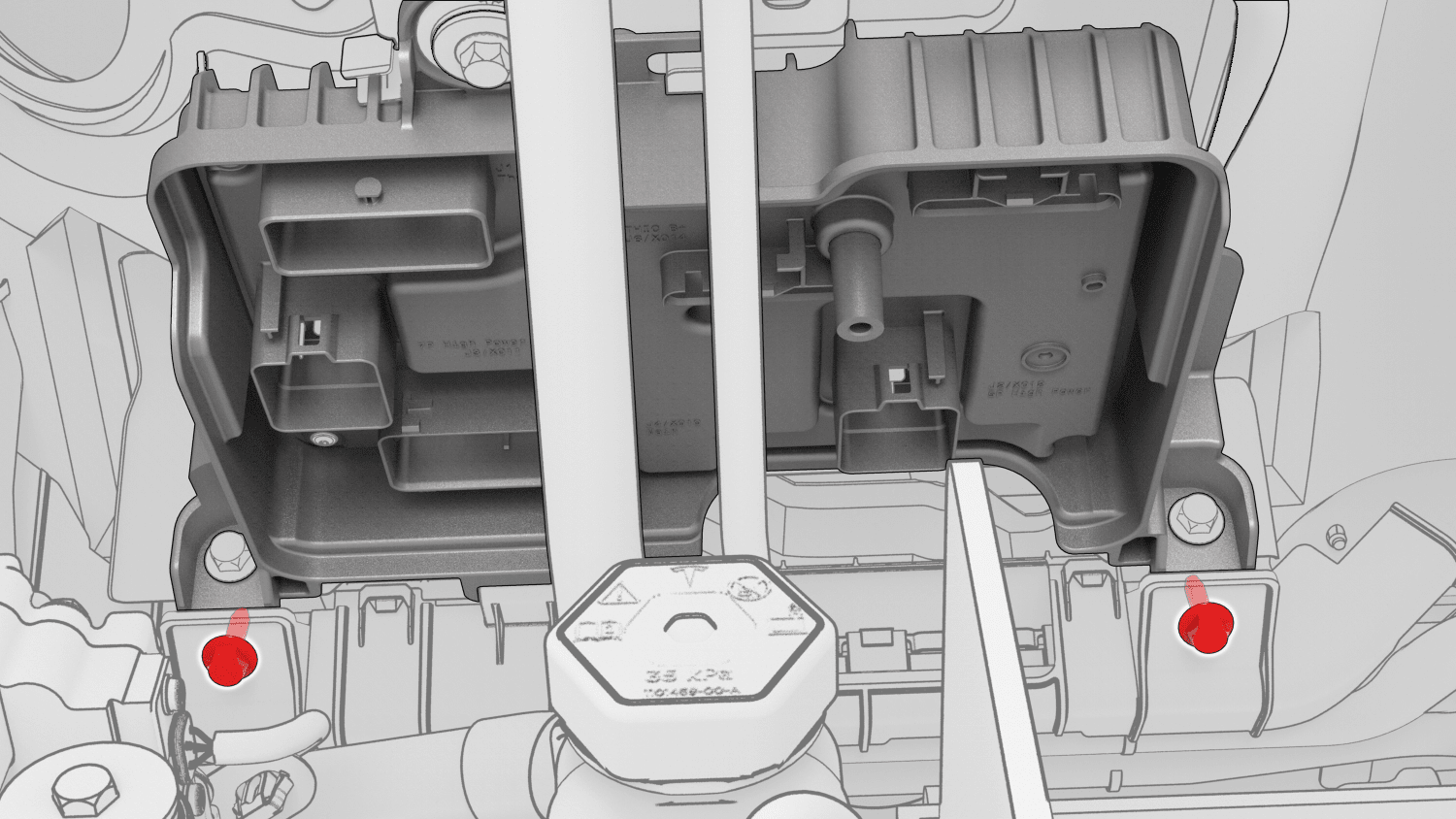 | Bolts (x2) that attach the harness guide to the front body controller module |