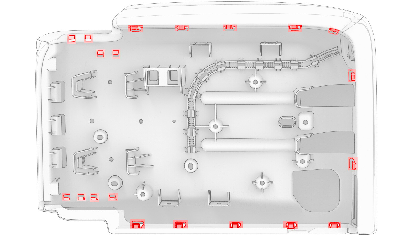 Install the hook and tabs (x20) that attach the LH 2nd row seat back