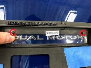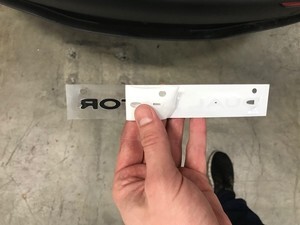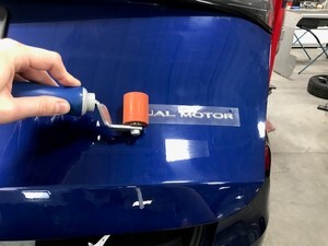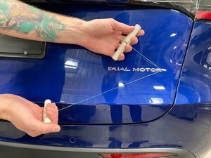 vehicle configuration badge and the liftgate, and then move the line in a sawing motion