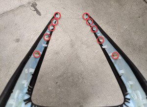 Fasten the locator tabs (x12) that attach the brightwork to the center