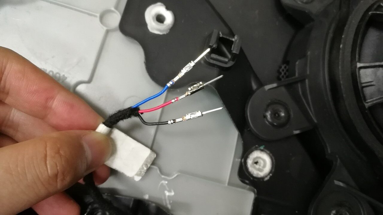 NoteSeparate the pins and plug to ensure that they can pass through the narrow trim panel space.NoteMark the position of pins and the electrical connector.