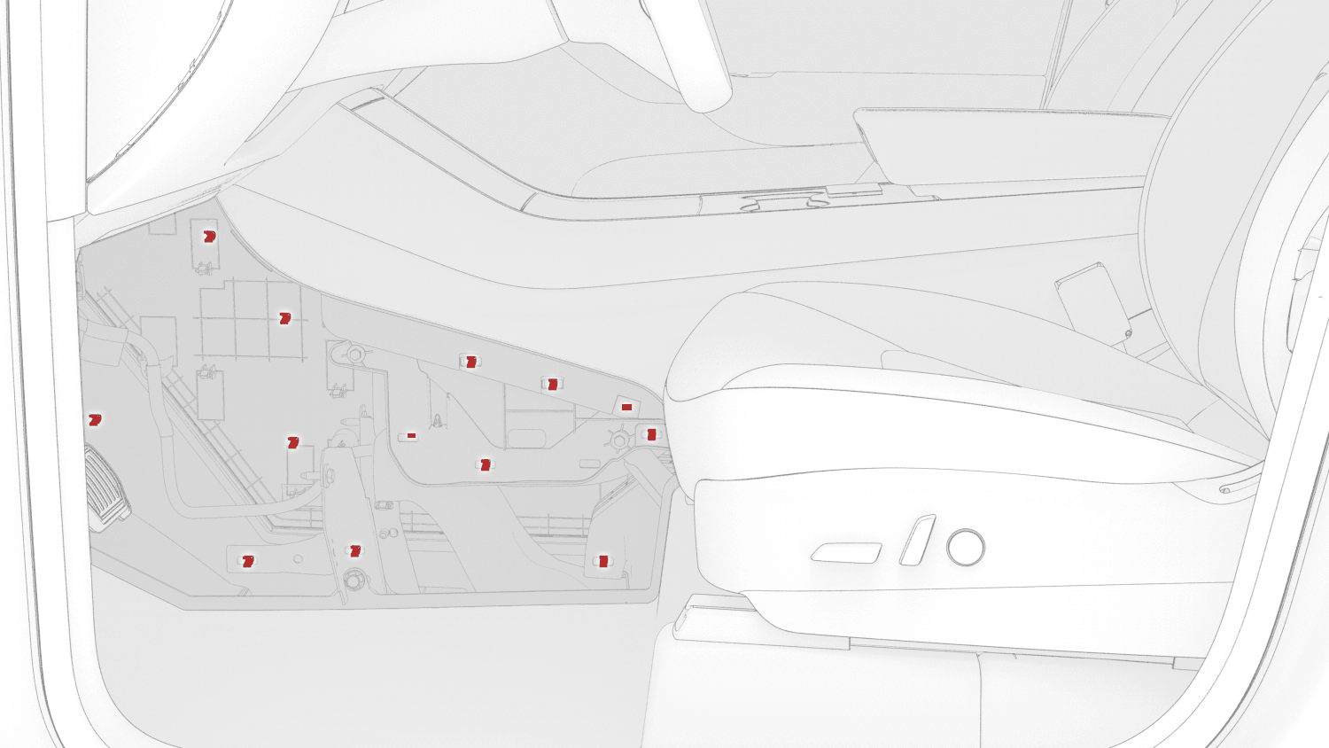 - Align the tabs in the front and rear of the LH side panel carpet before attaching the clips.