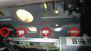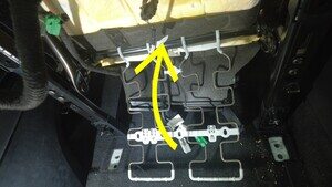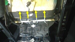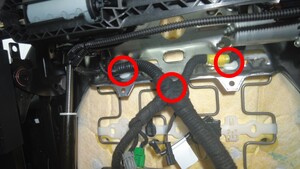 With assistance, remove the retaining clips (x4) under the main seat harness junction