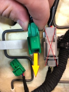 Remove the clips (x2) that attach the seat occupied sensor connector and the LH seat