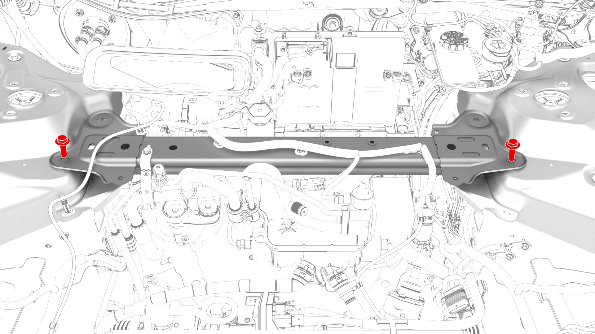 Install the LH and RH outer bolts that attach the shock tower brace to the body.
