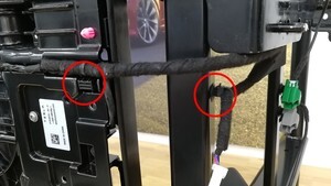 Release the clips (x2) that attach the center 2nd row seat backrest harness
