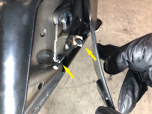 Release the 3rd row LH recliner actuator cable from the clip on seat frame