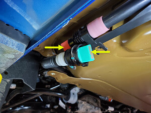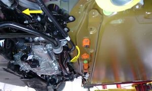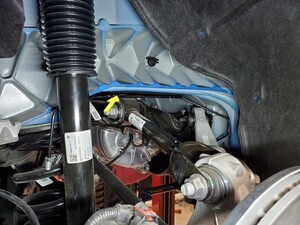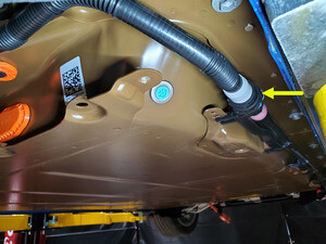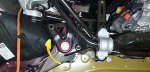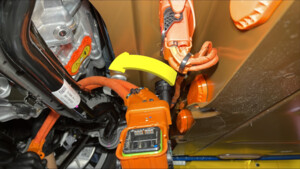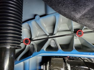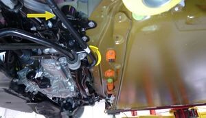 Note1x spring clip, 1x clip, Rotate between subframe and battery out of vehicle