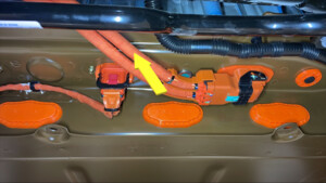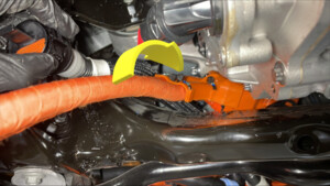NoteVerify meter is zeroed out before performing measurement, Measure single cable. Verify ammeter is installed in correct direction. If current > 0.5A do not proceed with disconnecting HV connector. In this case, start vehicle electrical isolation again to make sure that all was properly shut down. Escalate for assistance as requiredIf current < 0.5A, Ok to disconnect and check voltage at HV plug on the battery side.